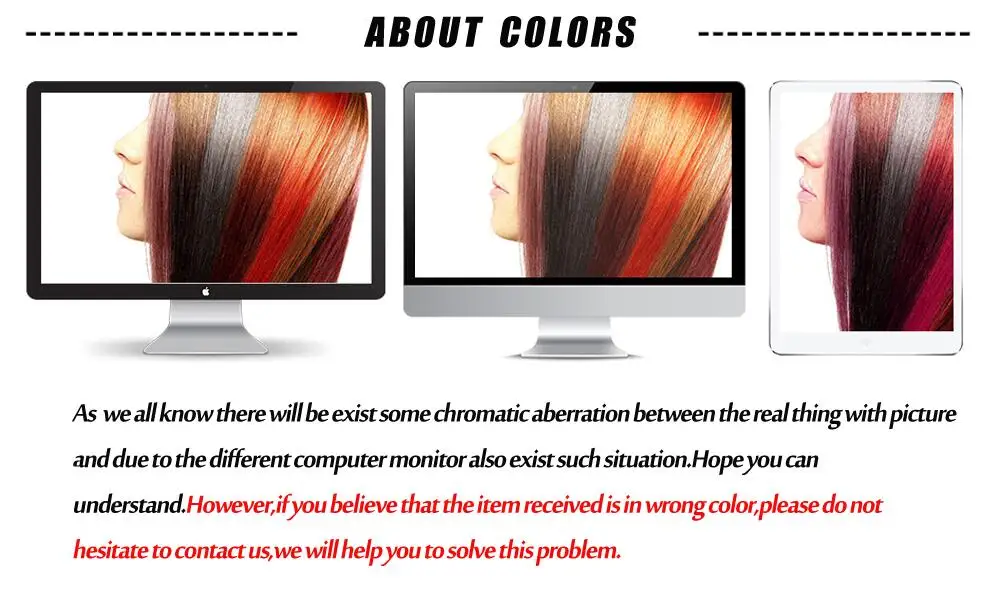 Однако, если вы считаете, что полученный товар не того цвета, пожалуйста, свяжитесь с нами, чтобы узнать, возможен ли возврат или возврат средств.