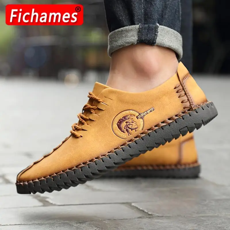 Лоферы мужские кожаные с ручной строчкой, удобные, мягкая желтая об...