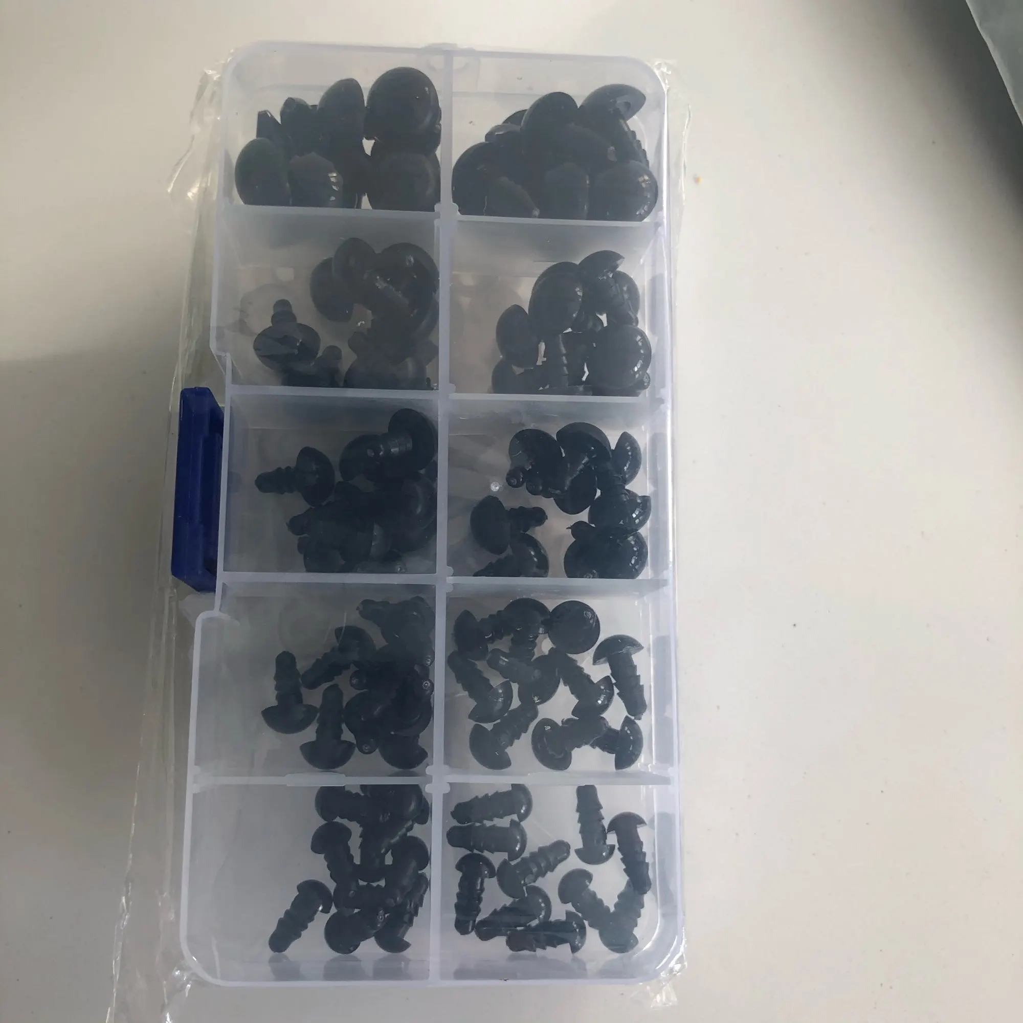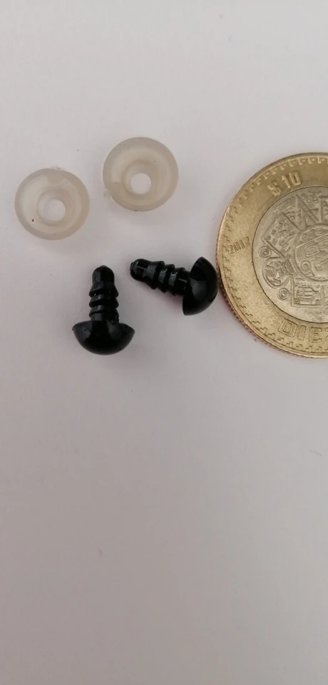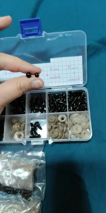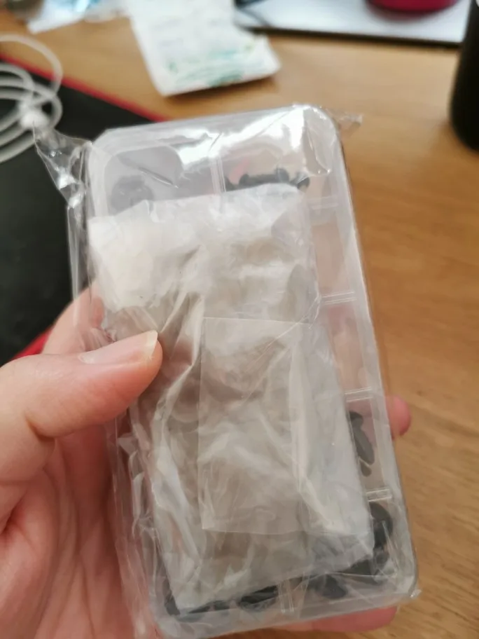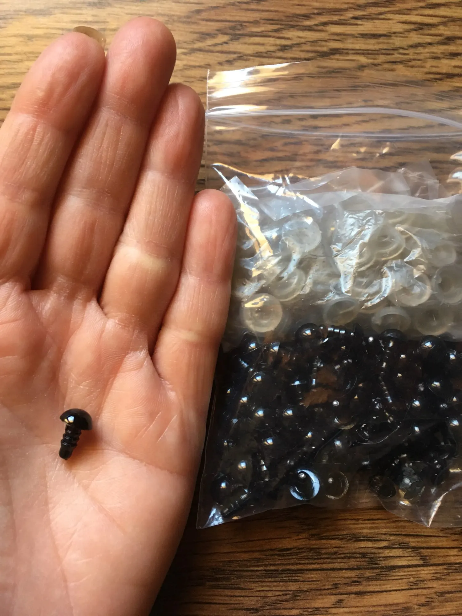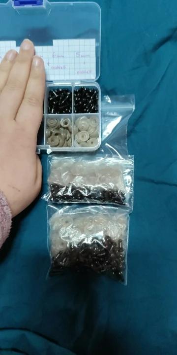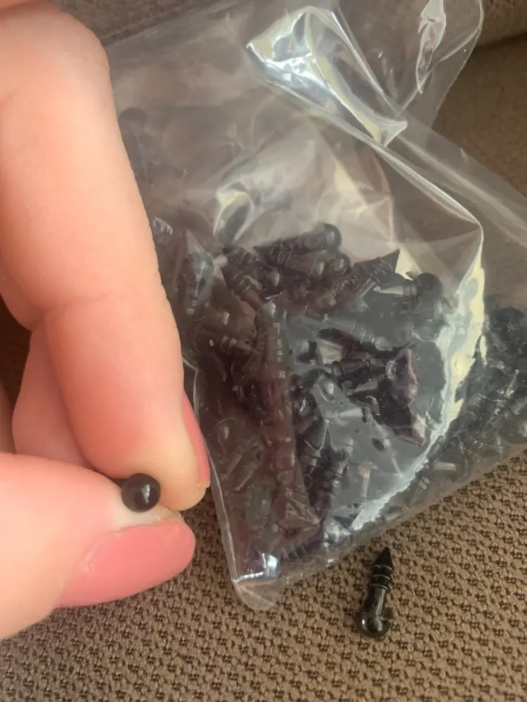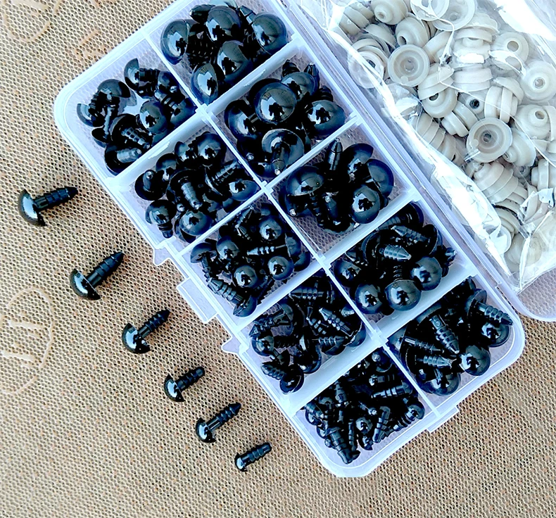 Доставка стандартная, около месяца. В наборе ровно 100 глазок. Из сотни 11 с кривыми ножками, штук 6 кривоватые по окружности. Креплений 82 маленькие и 19 более крупных для глазок 10-12 мм. Но одно мелкое крепление оказалось бракованым. Получается, что креплений тоже ровно сотня. Плохо только, что 81/19 а не 80/20. Теперь если придётся крепить последнюю пару глаз 12 мм то нужно думать, где взять заглушку по размеру. А так вполне сносно для такой стоимости.