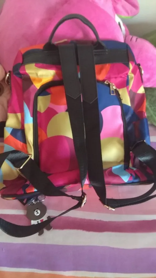 Очень доволен рюкзаком. Меньше, чем я ожидала, не для школьных книг, но я на самом деле предпочитаю этот размер, так как я хочу использовать его каждый день. Отлично, что отверстие сзади. Люблю брелок, который поставляется с сумкой!