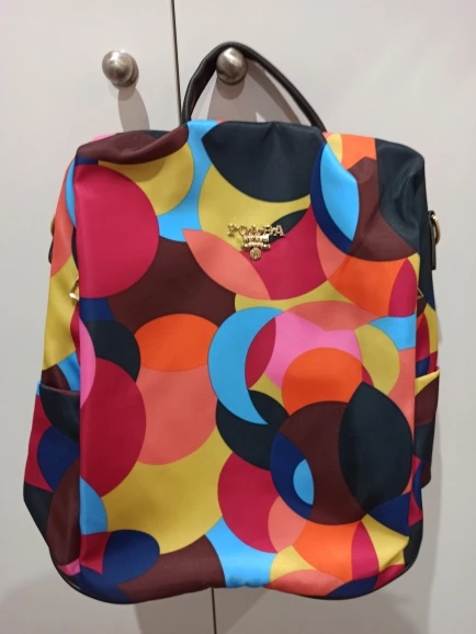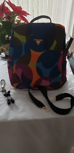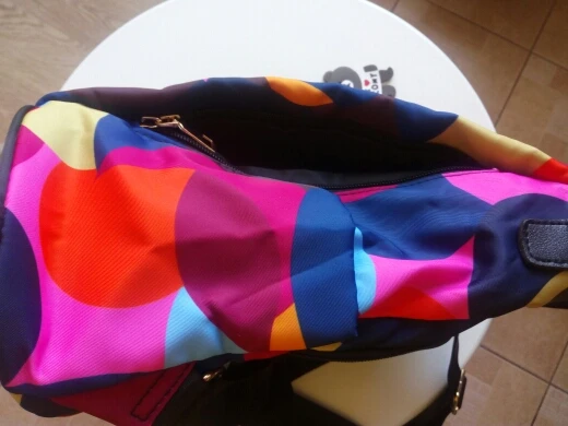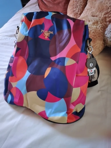 Очень красивый, яркие цвета, внутри кукла. Большой карман, с несколькими отделами. Пришло быстро. Я рекомендую.