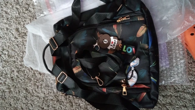 Мне нравится. Это так же, как на картинке. Его можно положить как рюкзак, а также носить другой ремень, чтобы повесить его на одно плечо. В комплект входит брелок с плюшевым мишкой. Спасибо продавцу.