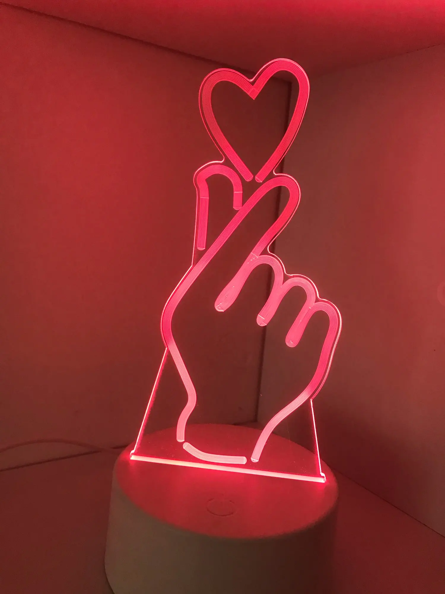 USB Новинка 7 цветов изменяющий палец сердце светодиодный ночсветильник 3D настольная лампа домашний декор