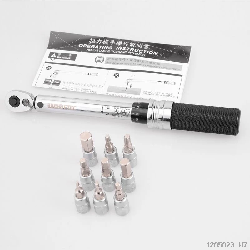 Посылка входит: 1 динамометрический ключ 1/4 дюйма, 9 торцевых ключей, 1 коробка, 1 Инструкция по эксплуатации