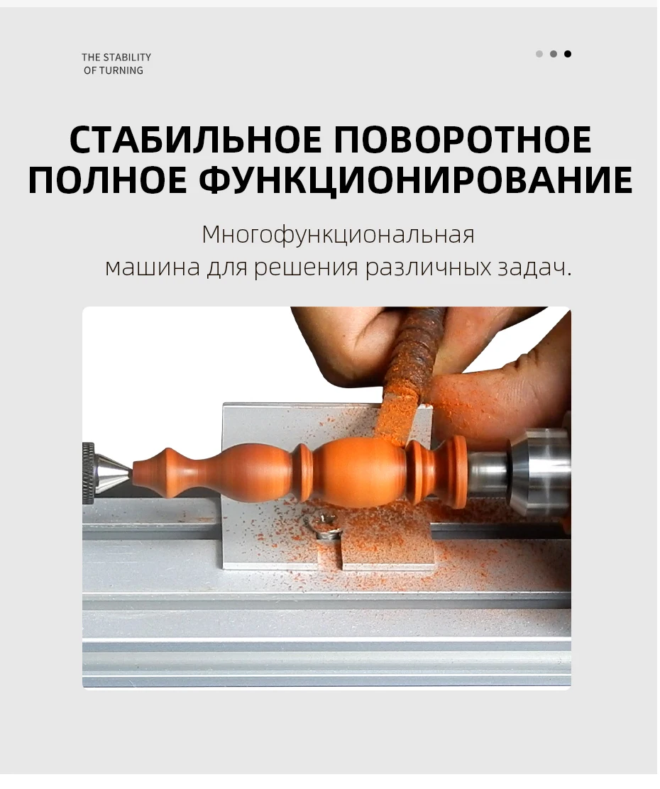 на самом деле он меньше чем кажется на фото. никаких инструкций, хотя в общем все понятно. второй патрон не встаёт ровно с переходником, все равно ведёт, как не пытайся настроить, очень это расстроило. на самом станке центр выставлен нормально, мотор нормальный поиграться пойдёт, насадки и резцы низкого качества.