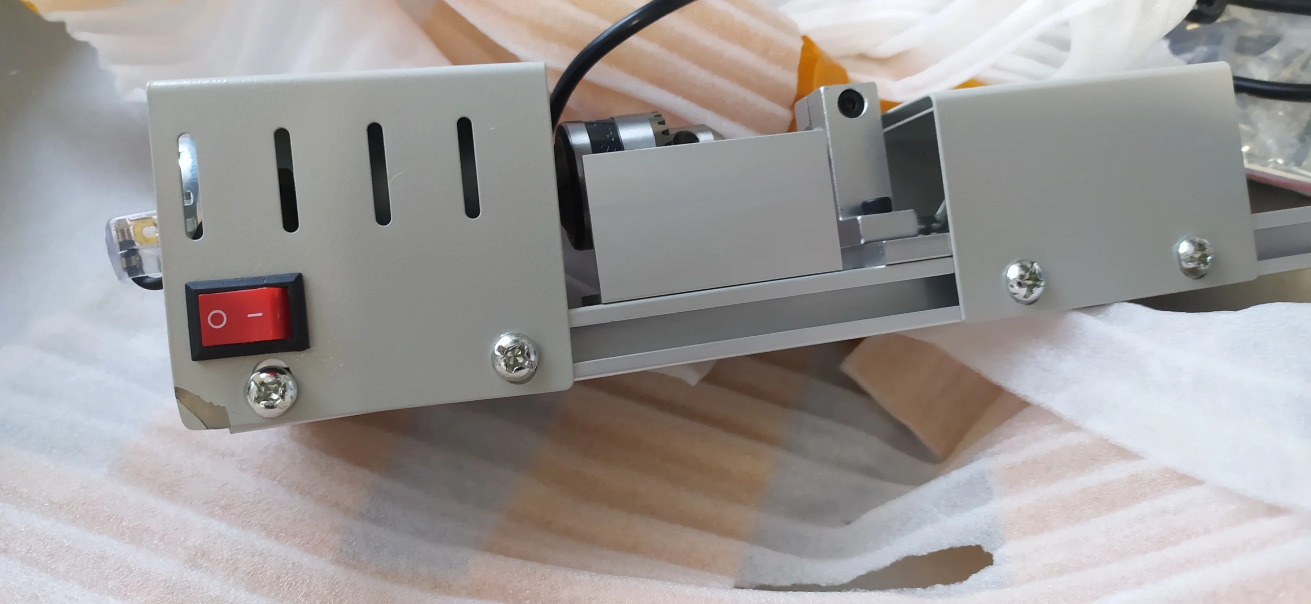 Ждал дольше обещанного, но под новый год заказывал, тут ожидаемо. Качество упаковки- ужас! Четыре слоя тонюсенького вспененного полиэтелена- это очень плохо. Углы "станины" замялись, у блока питания кусок отломился, на задней бабке на острие замятие, мятые расходники бонусом- но они фигня, ) Сам станочек весьма занятный, сделан качественно, соосность бабок выравнивается, вал на моторе не люфтит совсем. Точить пока не пробовал, нужны нормальные резаки/"стамески".