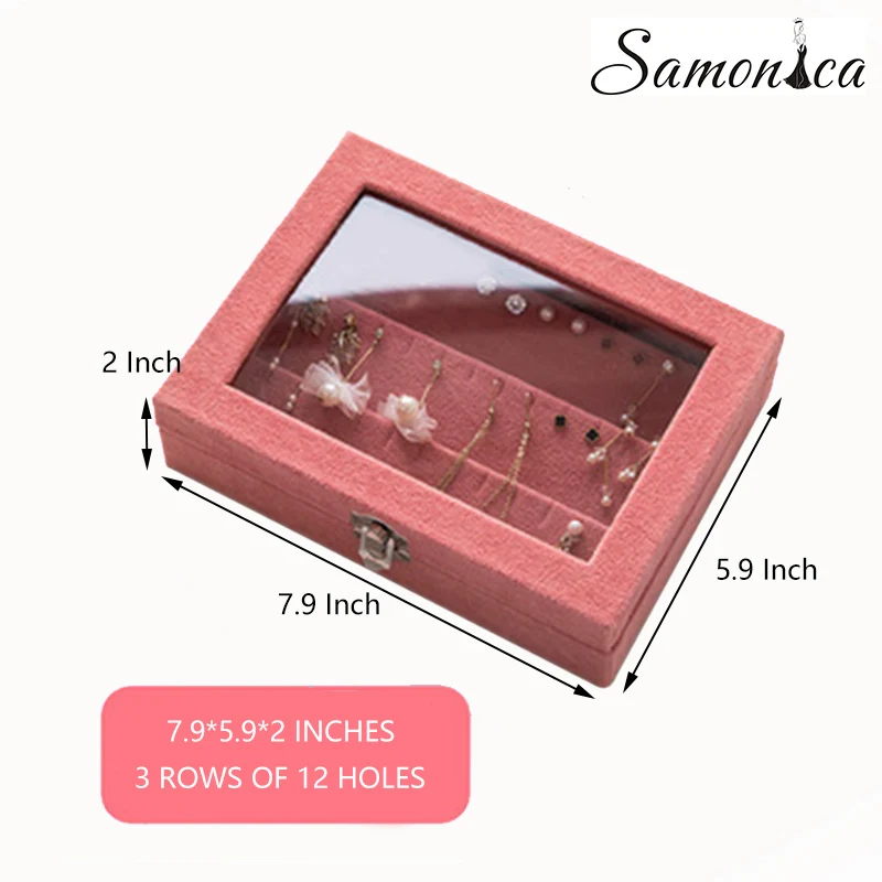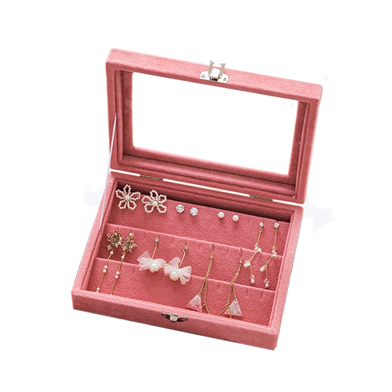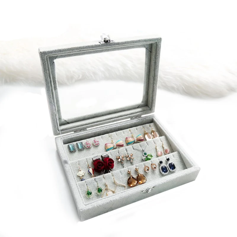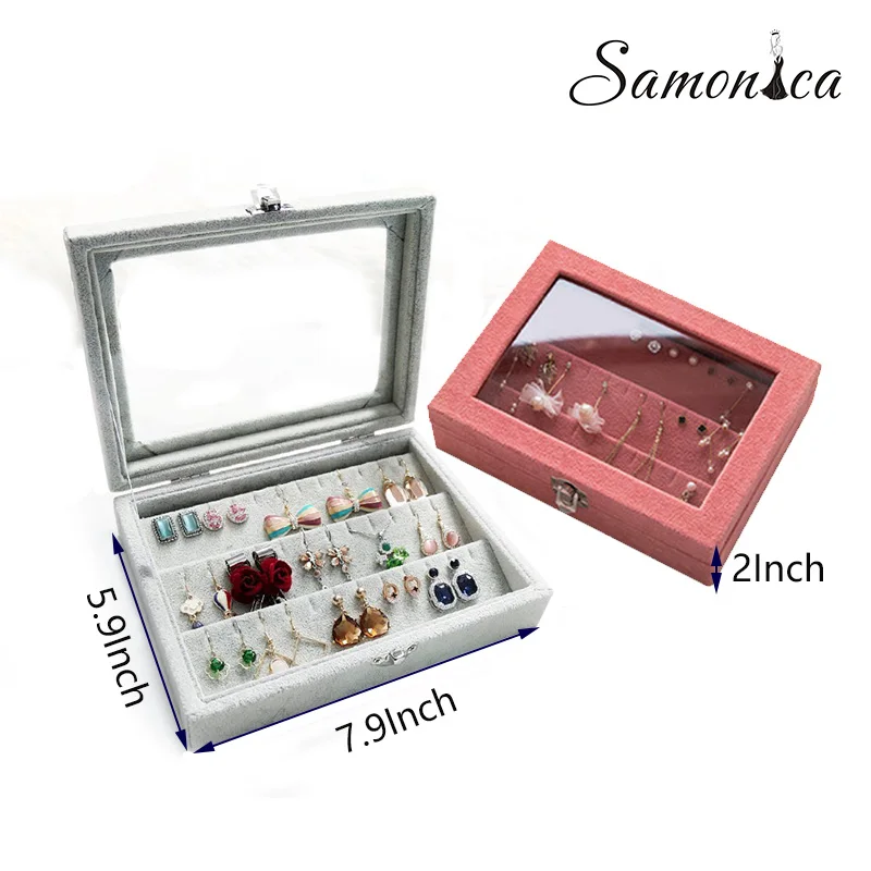 Новый модный серыйрозовый бархатный органайзер для хранения ювелирных украшений, органайзер для сережек, шкатулка для ювелирных изделий, коробка для сережек
