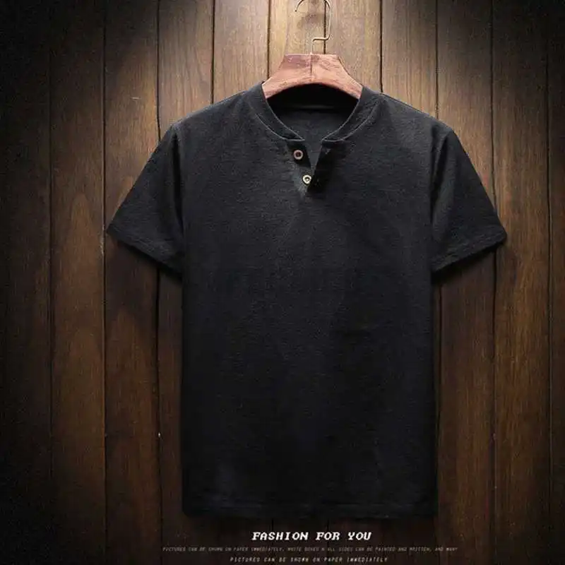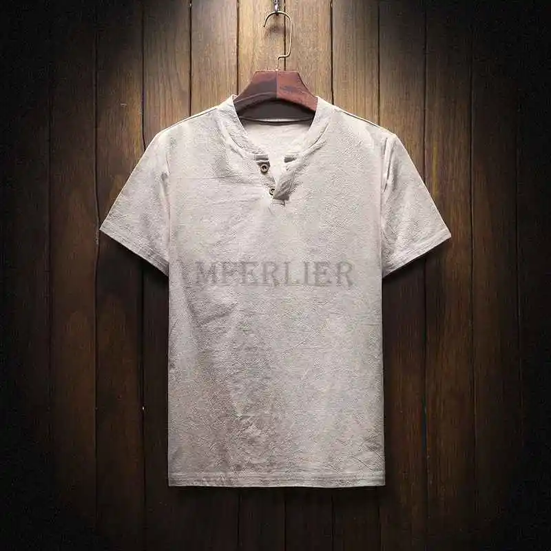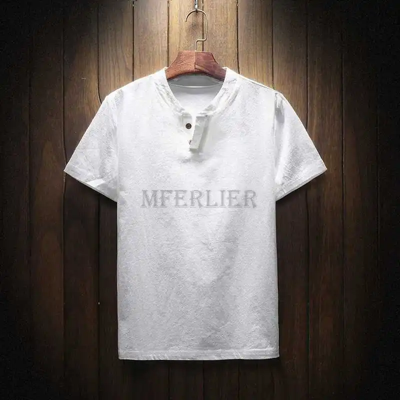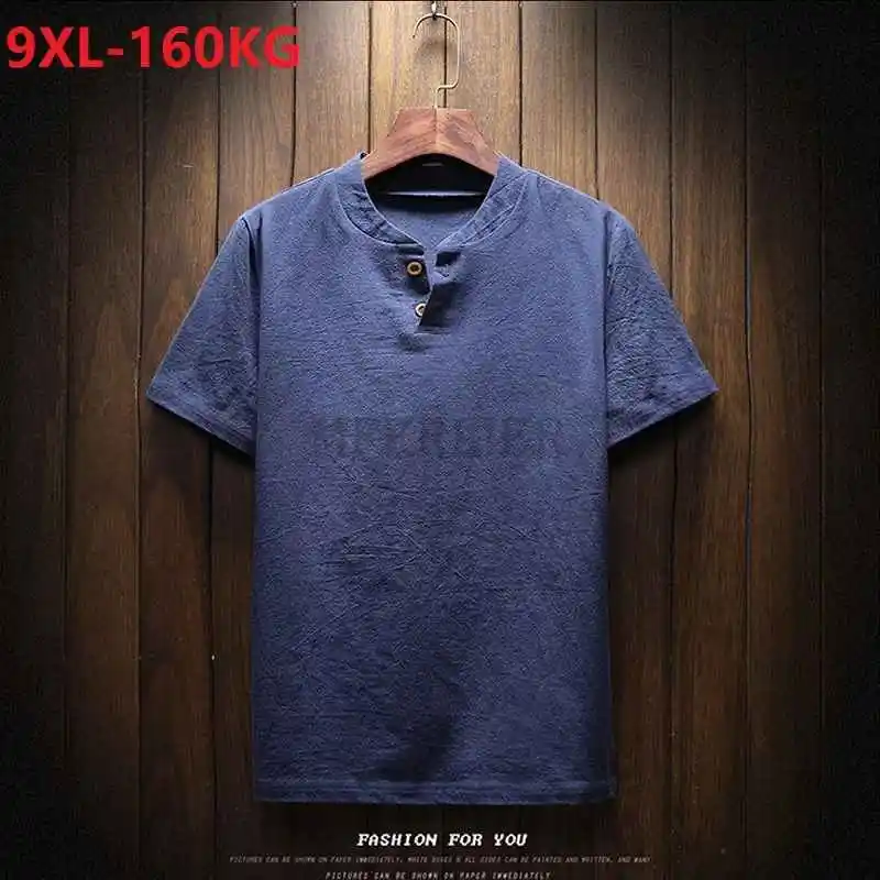 Футболка MFERLIER Мужская хлопково-льняная с коротким рукавом, винтажная Свободная рубашка в японском стиле, синий цвет, большие размеры 9XL 160 кг, на лето