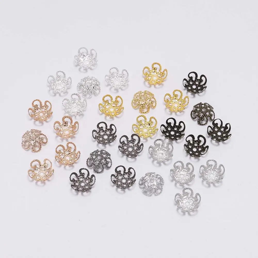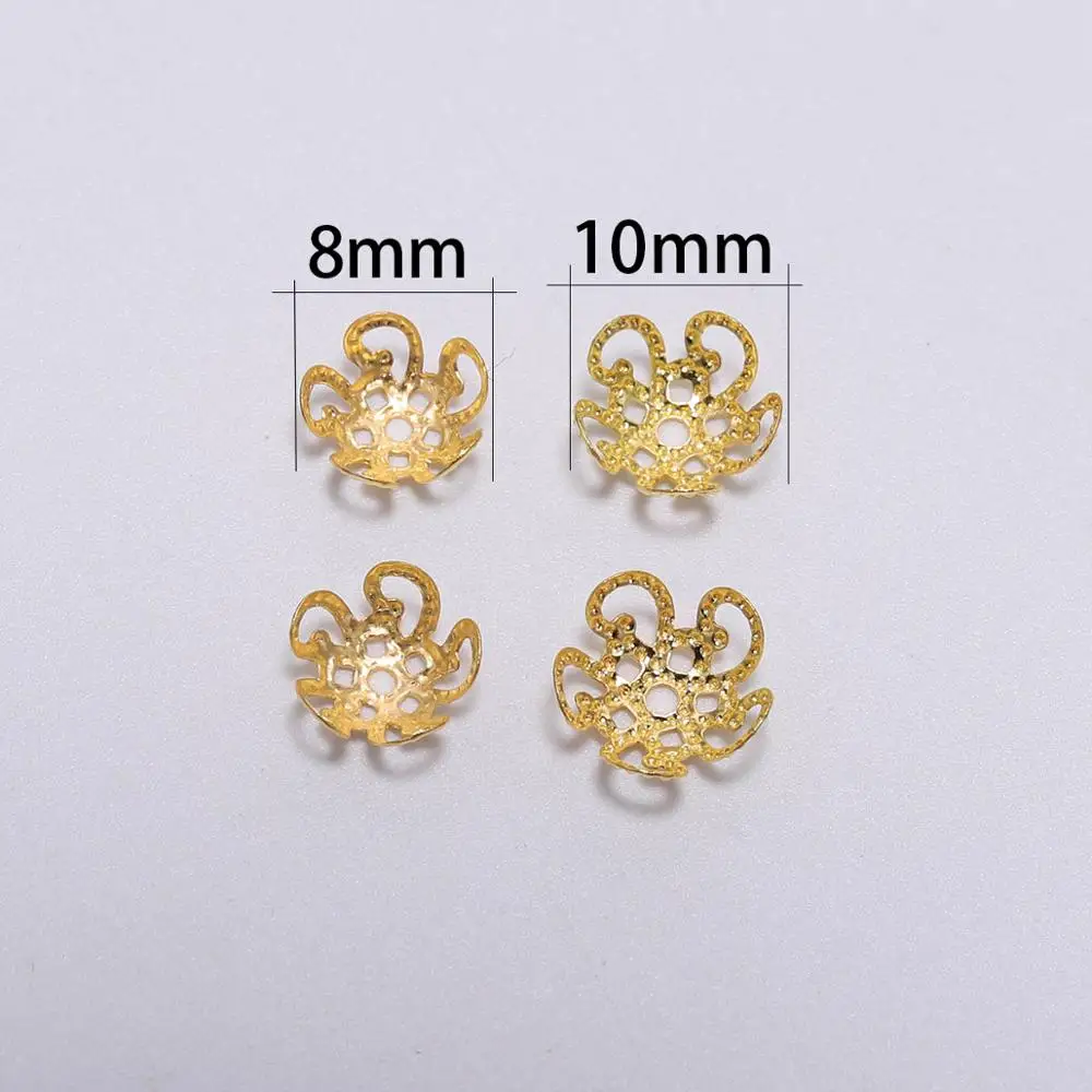 Блестящие винтажные филигранные Металлические Полые бусины-разделители для цветов, Концевики, подвески, фурнитура для изготовления ювелирных изделий своими руками, 100 шт., 8 мм, 10 мм