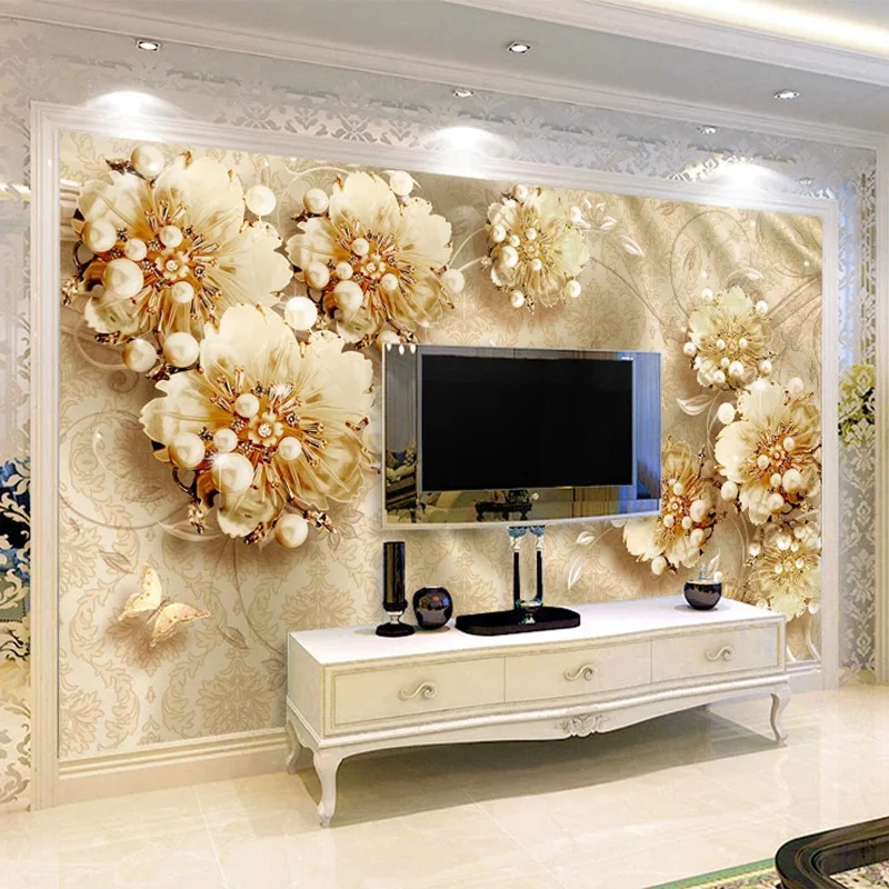 Пользовательские Настенные обои Европейский стиль ювелирные изделия цветы фото обои для гостиной самоклеющиеся водонепроницаемые наклейки домашний декор