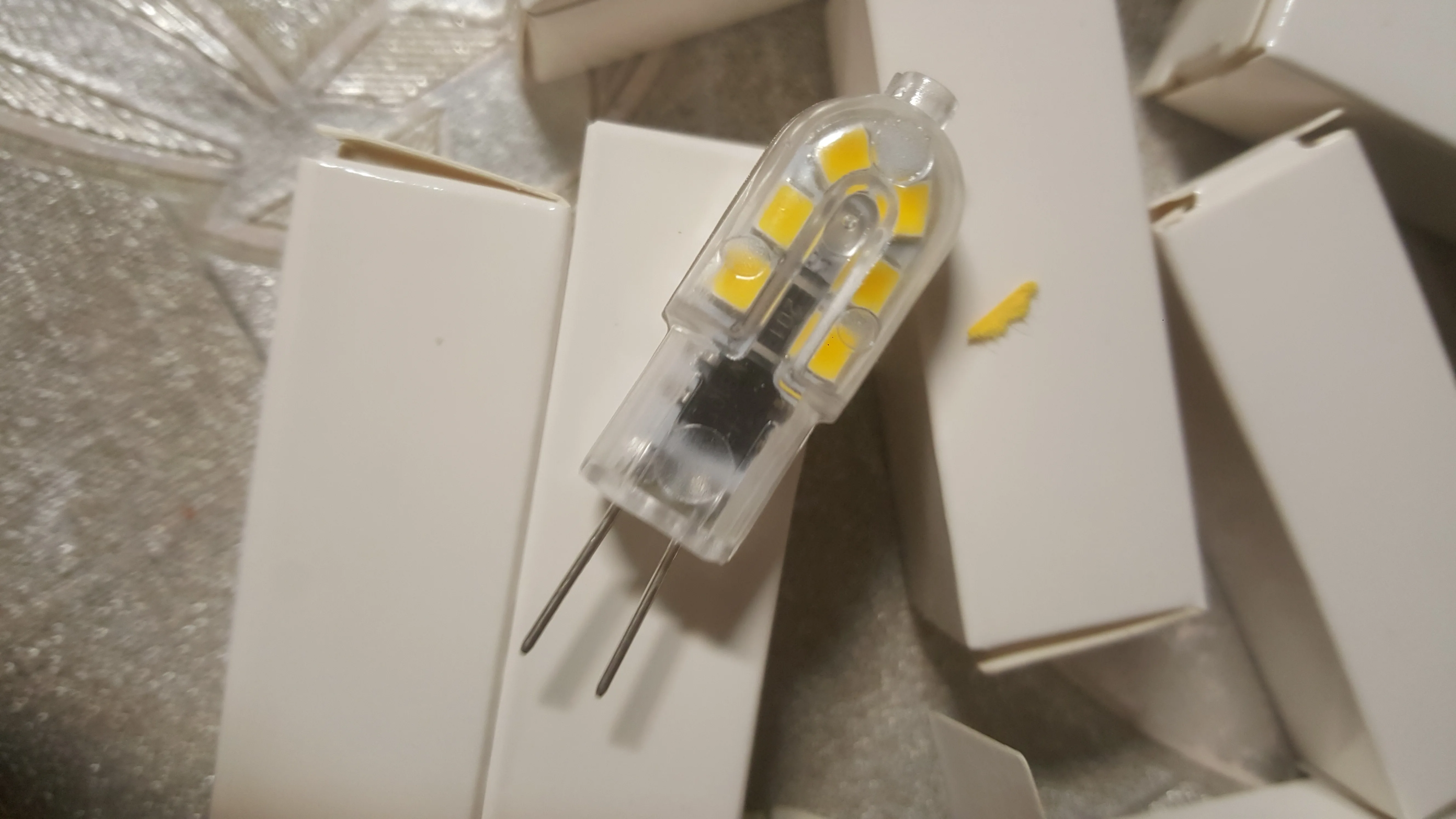 Лампы получил быстро, но придётся теперь заказывать ещё и блоки питания для led ламп. В люстре от блоков питания 12v для галогенных эти горят в пол накала
