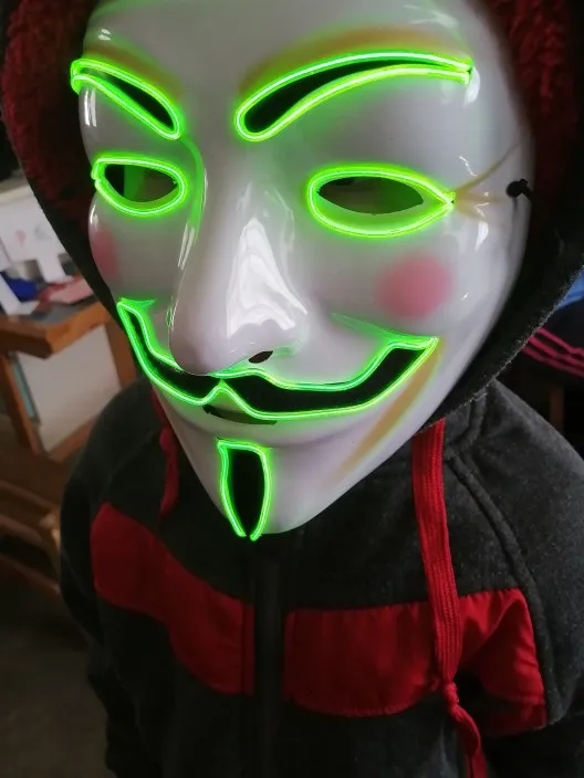 Маска для Хэллоуина Вендетта EL Wire, мигающая маска для косплея, светодиодный неоновый костюм, анонимная маска для светящегося танца, маски для карнавала вечеринки