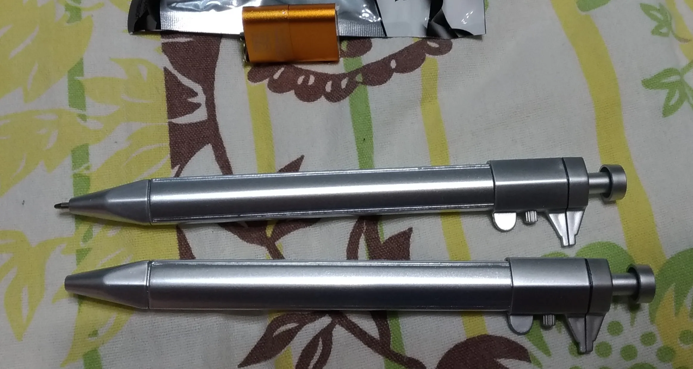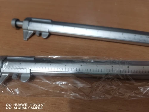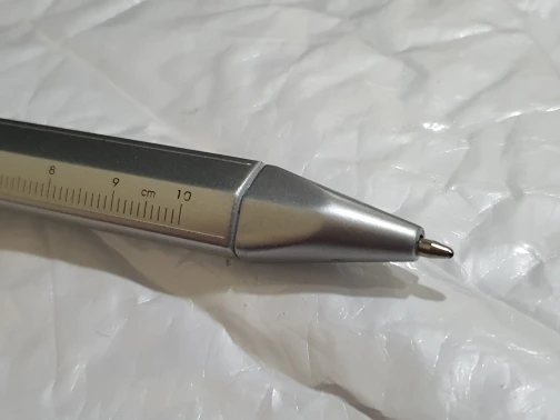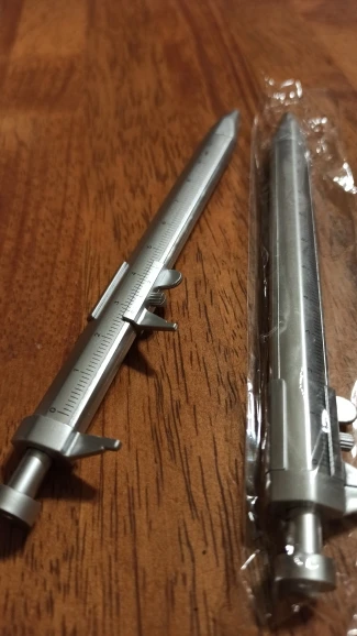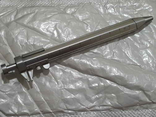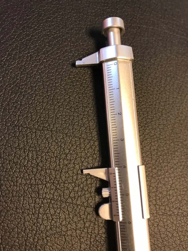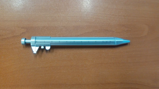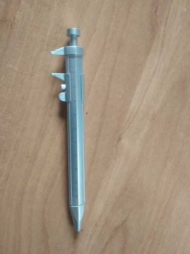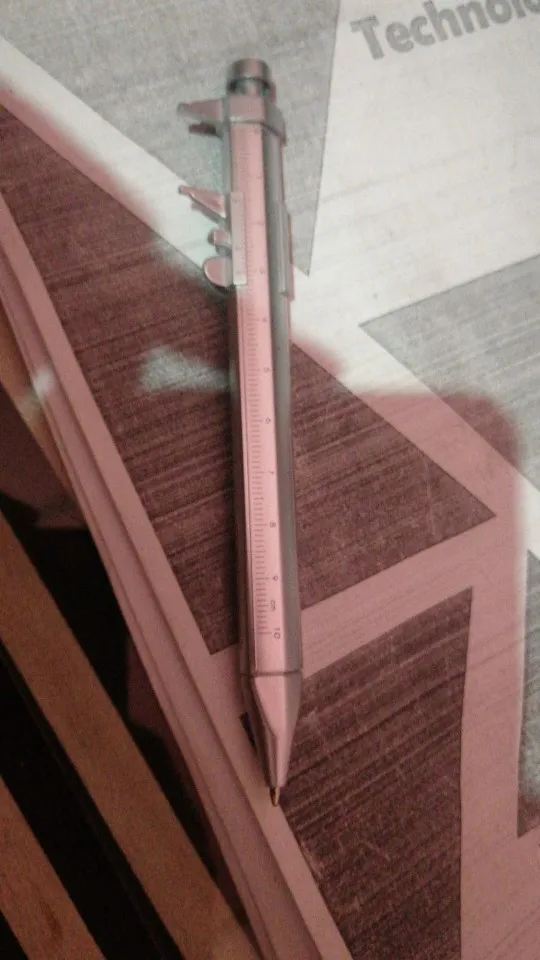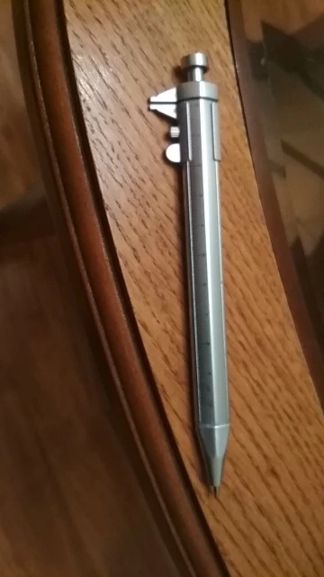 маленький штангель, точности конечно нет, но иногда под рукой линейки нет, а ручка всегда в сумке или в машине и более менее точно диаметр можно глянуть.