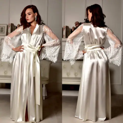 2021 сексуальное женское белье, Шелковый кружевной длинный халат, платье, Пижама, ночная рубашка, одежда для сна