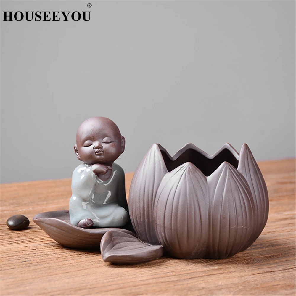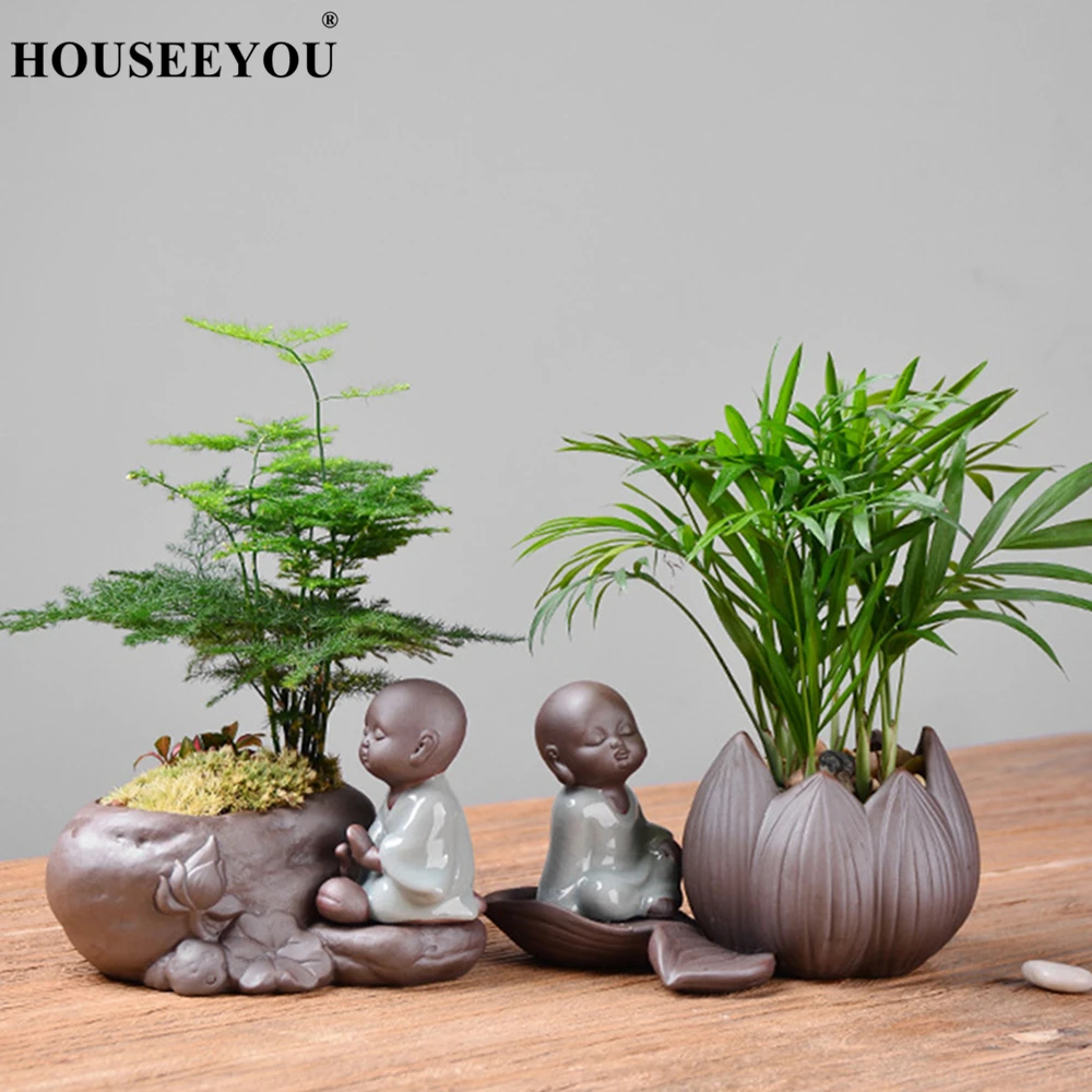 Креативный маленький монах дзен, фиолетовая глина, Гидропонные суккуленты, цветочный горшок, керамическая ваза для цветов, маленькие украшения, декор для гостиной