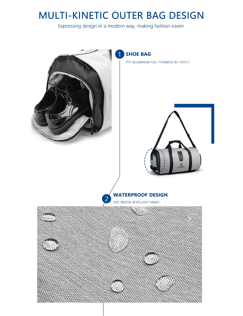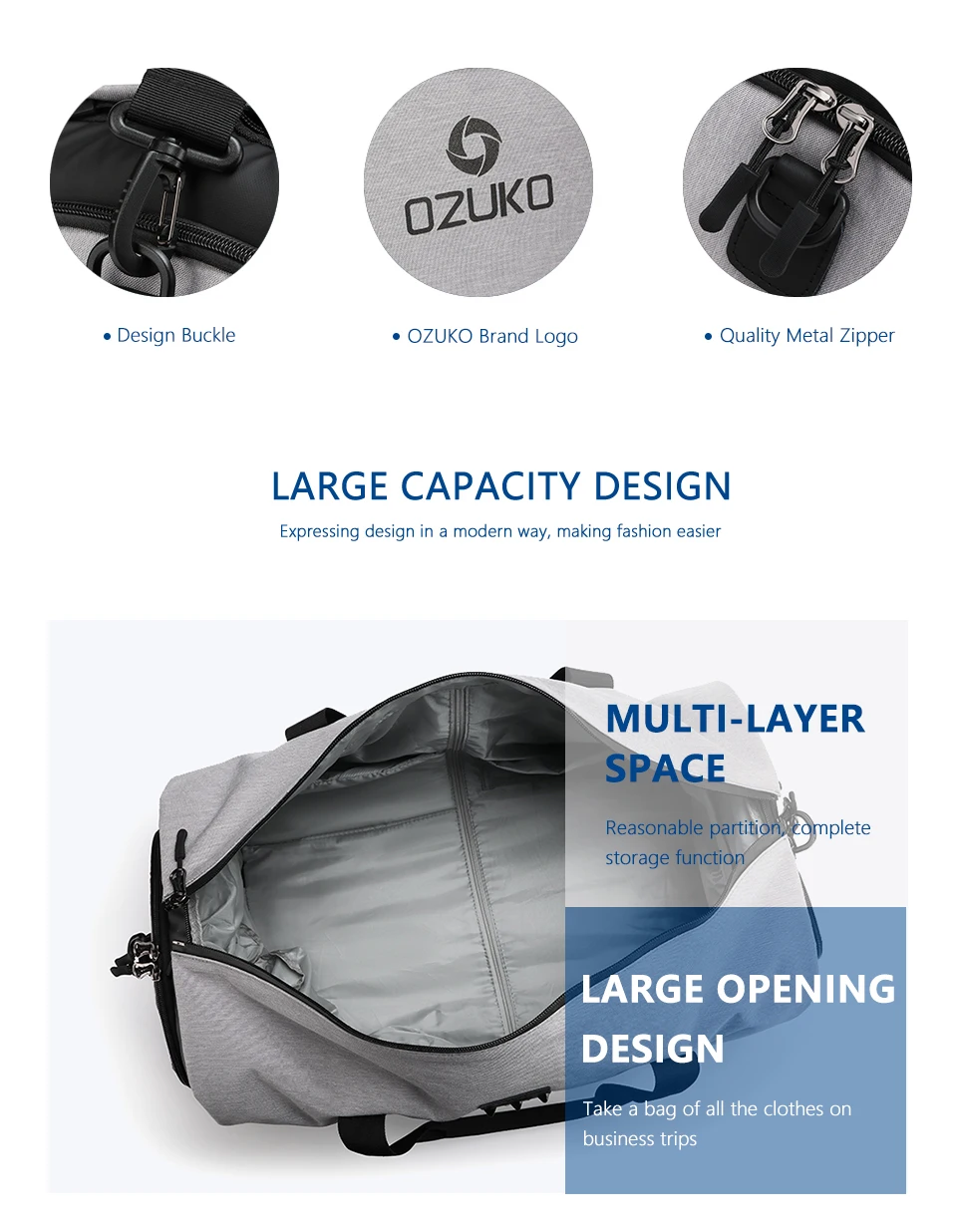 Item Name5OZUKO Multifunction Large Capacity Men Travel Bag
