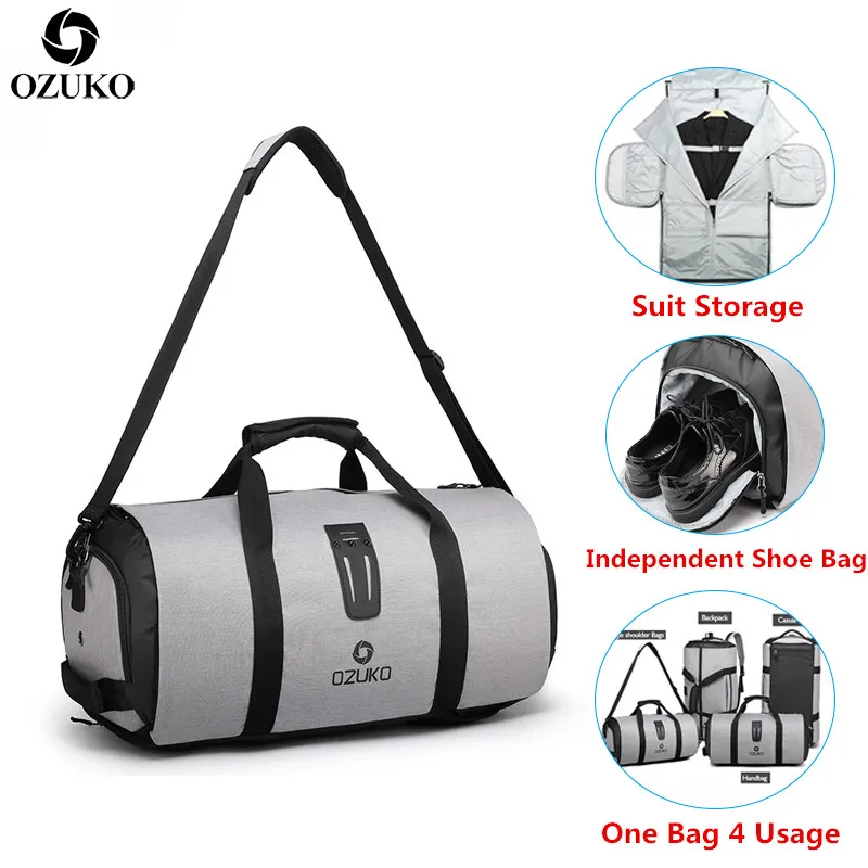 Дорожная сумка OZUKO для мужчин, многофункциональная Водонепроницаемая спортивная сумка, для хранения одежды, чемодан для поездок с сумкой для обуви, большой вместимости