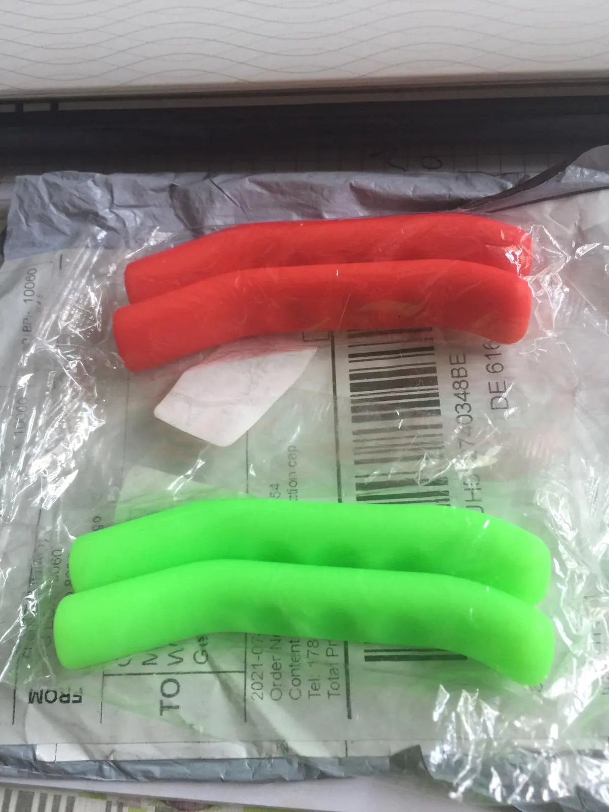 Заказ прибыл довольно быстро. На велосипеде смотрятся забавно. Товаром доволен. Хотел именно такие кислотного цвета.
