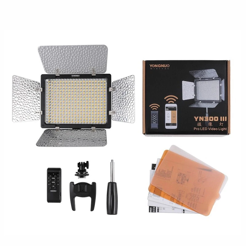3.YN300 III состоит из 150 светодиодный ламповых бусин с цветовой температурой 3200k и еще 150 светодиодный ламповых бусин с цветовой температурой 5500k, которые являются высококачественными ламповыми бусинами сверхбольших светящихся чипов, С более высокой яркостью в одинаковом энергопотреблении. Цветовая температура может быть скорректирована с 3200-5500K по мере необходимости, с более практичным использованием.