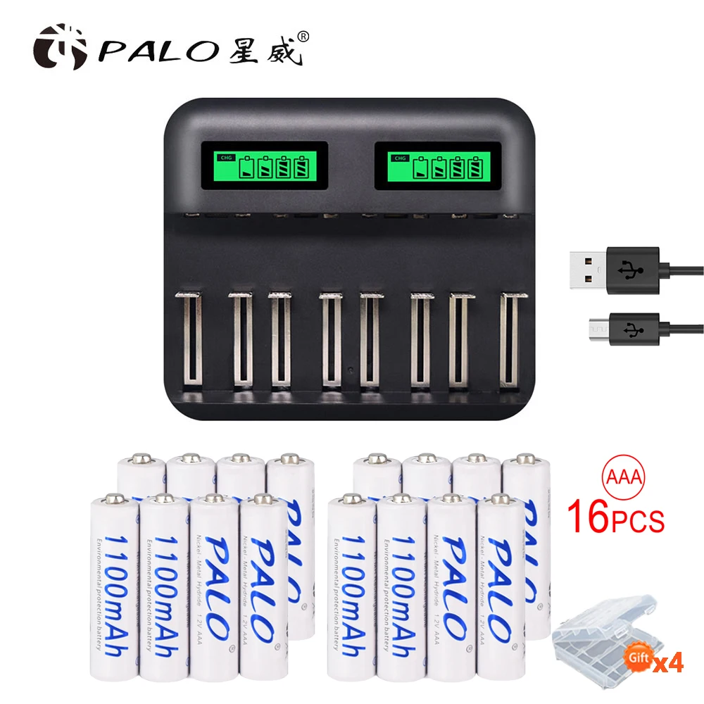 Аккумуляторные батареи PALO AAA 1,2 в AAA 3A aaa 1100 мАч с 8 слота...