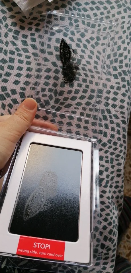 Мне потребилось некоторое время, чтобы добраться до него, но он идеально подходит для размещения следов новорожденного, даже для руки, материал листов находится в толстой бумаге, и масленка может использоваться только 2 раза, потому что чернила кончатся. Она была рада, потому что у меня идеальное запоминание принтов моего ребенка.