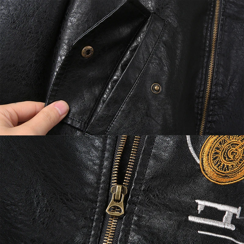 Мужские кожаные куртки и пальто, Мужская мотоциклетная флисовая кож...