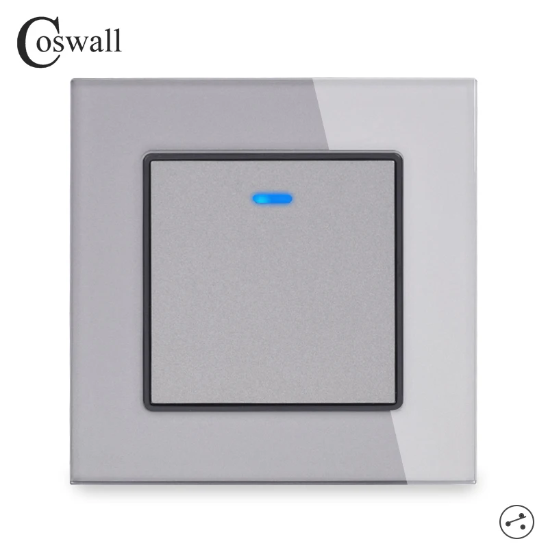 Стеклянная панель Coswall, 1 клавиша, 2-сторонний переключатель света, переключатель вклвыкл, настенный переключатель со светодиодный ным индикатором