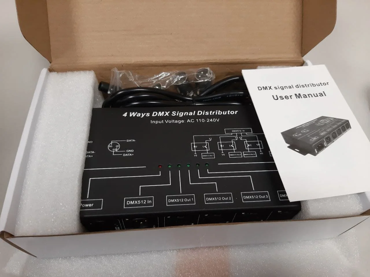 Усилитель DMX124 DMX512, разветвитель сигнала DMX, ретранслятор сигнала, 4 выходных порта, распределитель сигналов DMX; Вход AC100V-240V; Бесплатная доставка