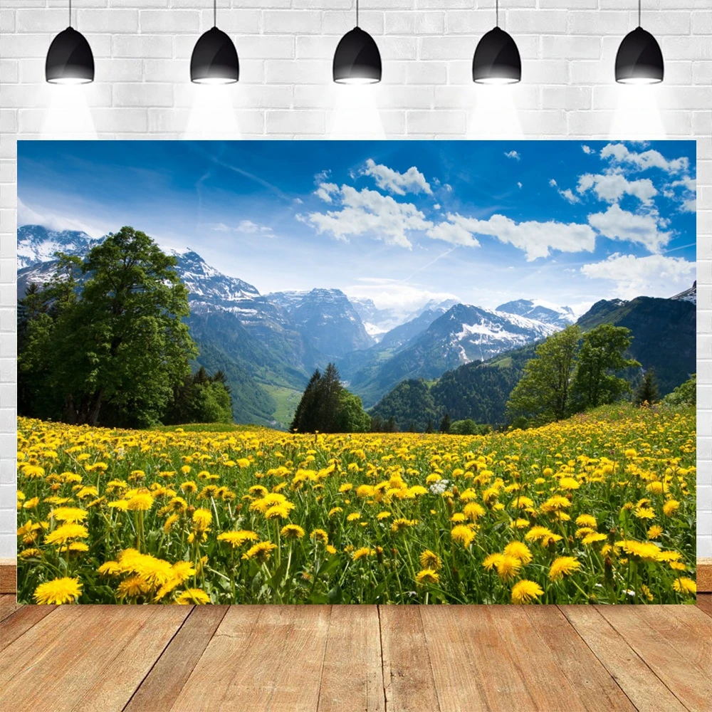 Фон для детской портретной съемки с изображением гор неба облаков цветов водопада природы пейзажа весенний фон для фотостудии реквизит