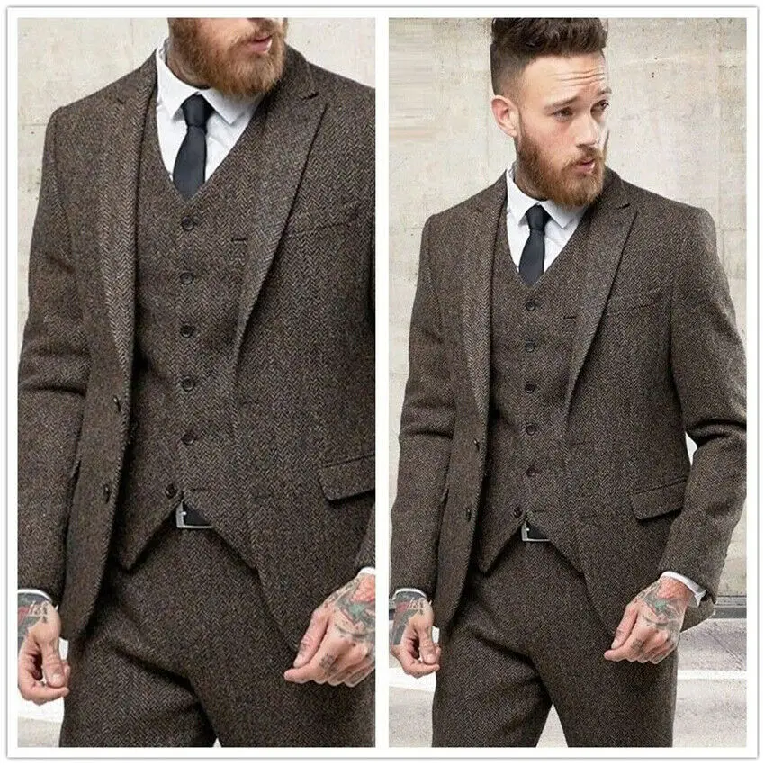 Шерстяной коричневый классический твидовый костюм для жениха на зак...