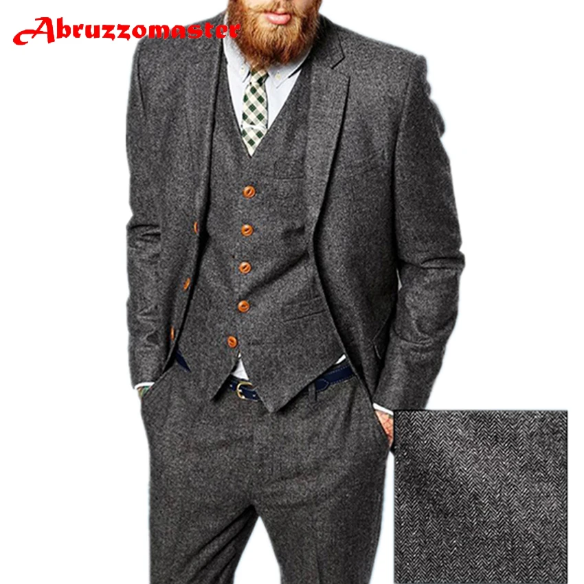Костюм Abruzzomaster мужской в елочку, серый современный блейзер в британском стиле, свадебные костюмы из 3 предметов, Твидовые костюмы для жениха