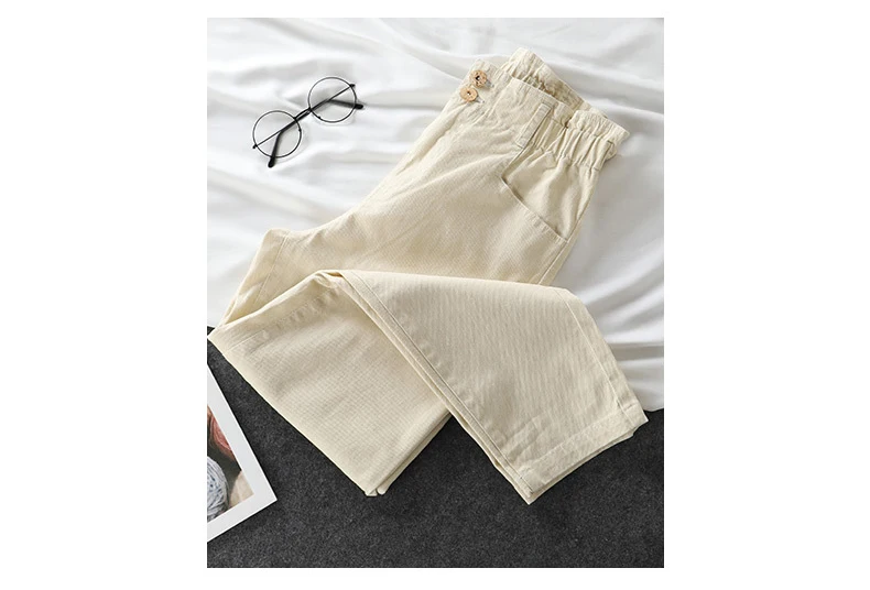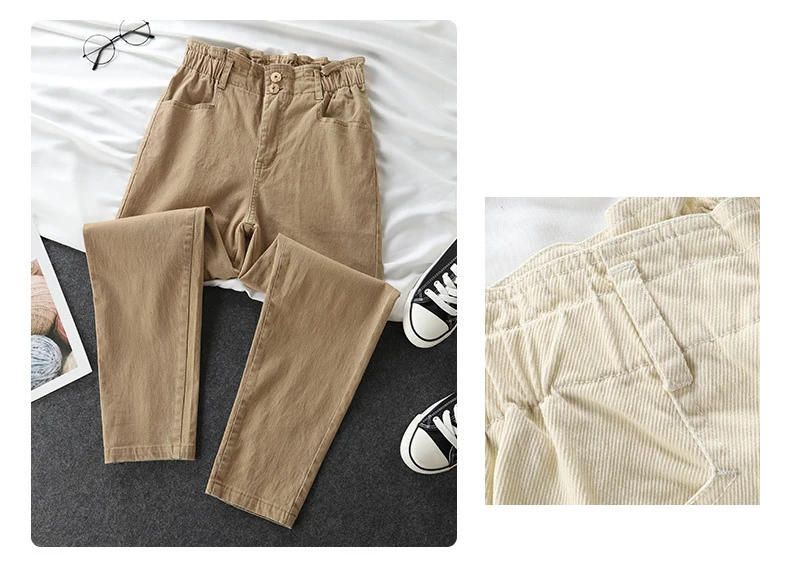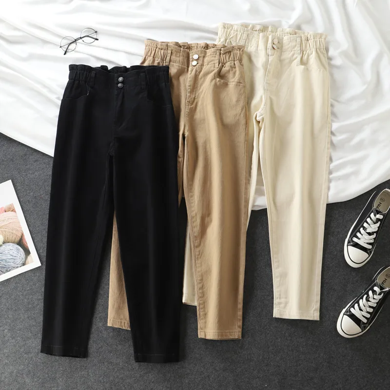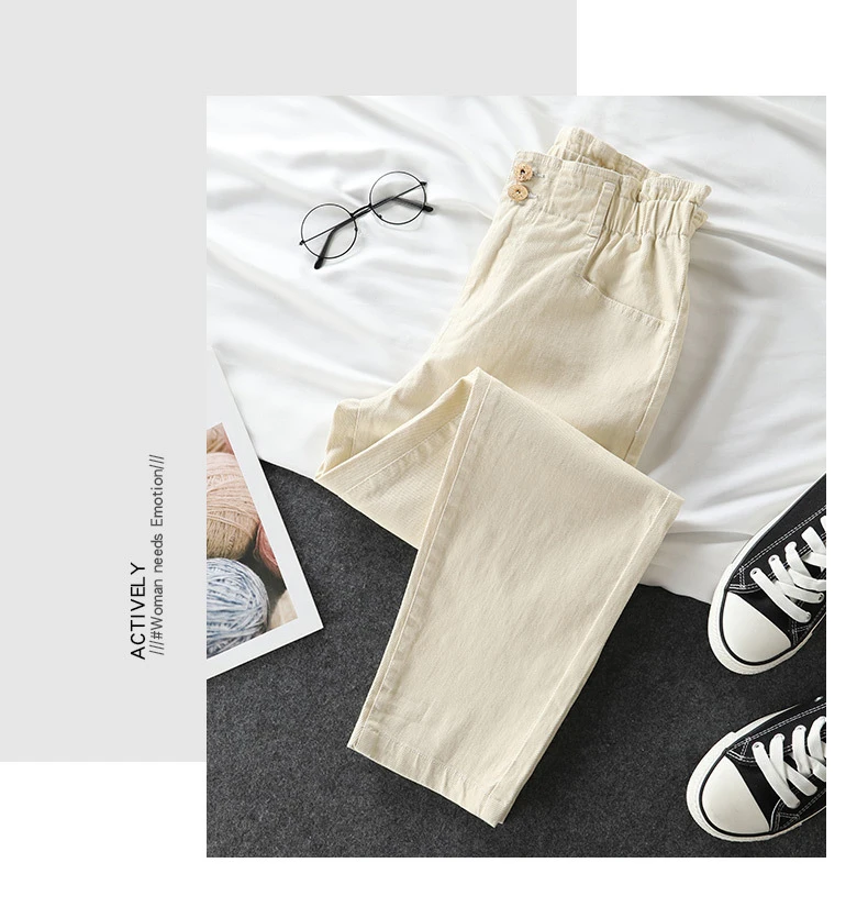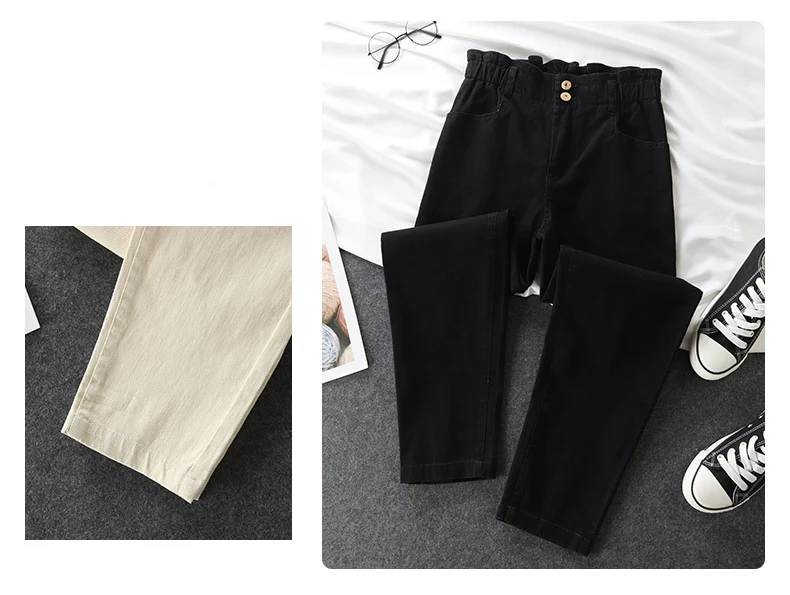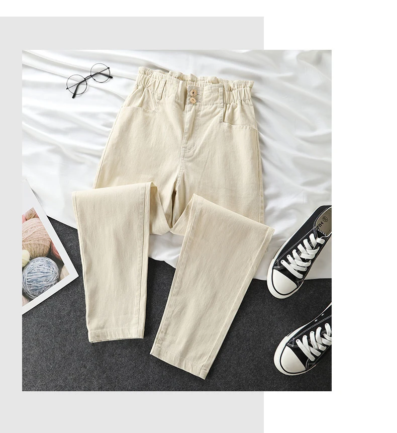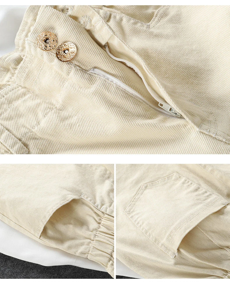 Женские джинсовые брюки Schinteon, бежевые прямые свободные брюки до щиколотки с высокой талией и оборками, размеры 38, 40