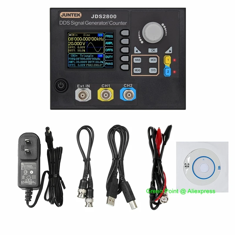 Двухканальный генератор сигналов серии JDS2800 сочетает в себе несколько функций s в одном, таких как генератор функциональных сигналов, генератор произвольной формы, импульсный генератор, развертка, счетчик и счетчик частоты и т. д. Прибор использует технологию прямого цифрового синтезатора (DDS) и обеспечивает стабильные, точные, чистые и низкие сигналы искажений. Это отличный испытательный или измерительный инструмент для инженеров электроники, электронной лаборатории, обучения и исследований.