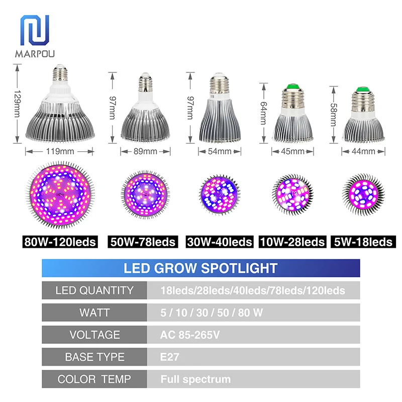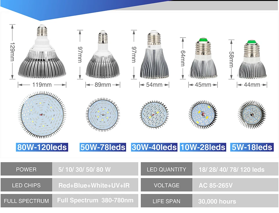 Светодиодный толампа светодиодная полного спектра для выращивания растений, 80/50/30/10/5 Вт, AC85-265V светодиодов----------------------------------------------------------------------------------------------------------------------------------------------