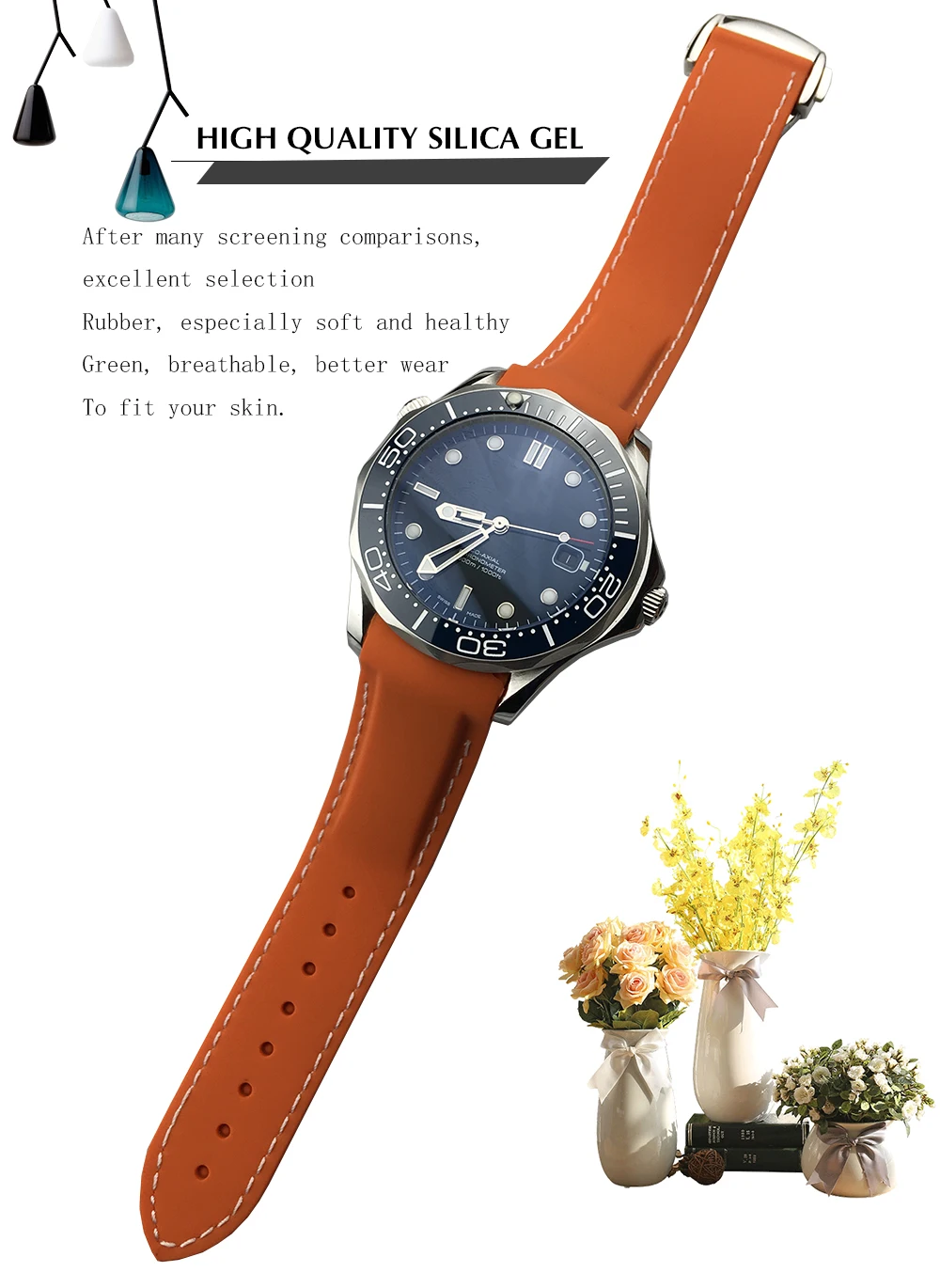 Ремешок силиконовый складной для часов, резиновый браслет для часов Omega Seamaster Speedmater, 19 мм 20 мм 21 мм 22 мм