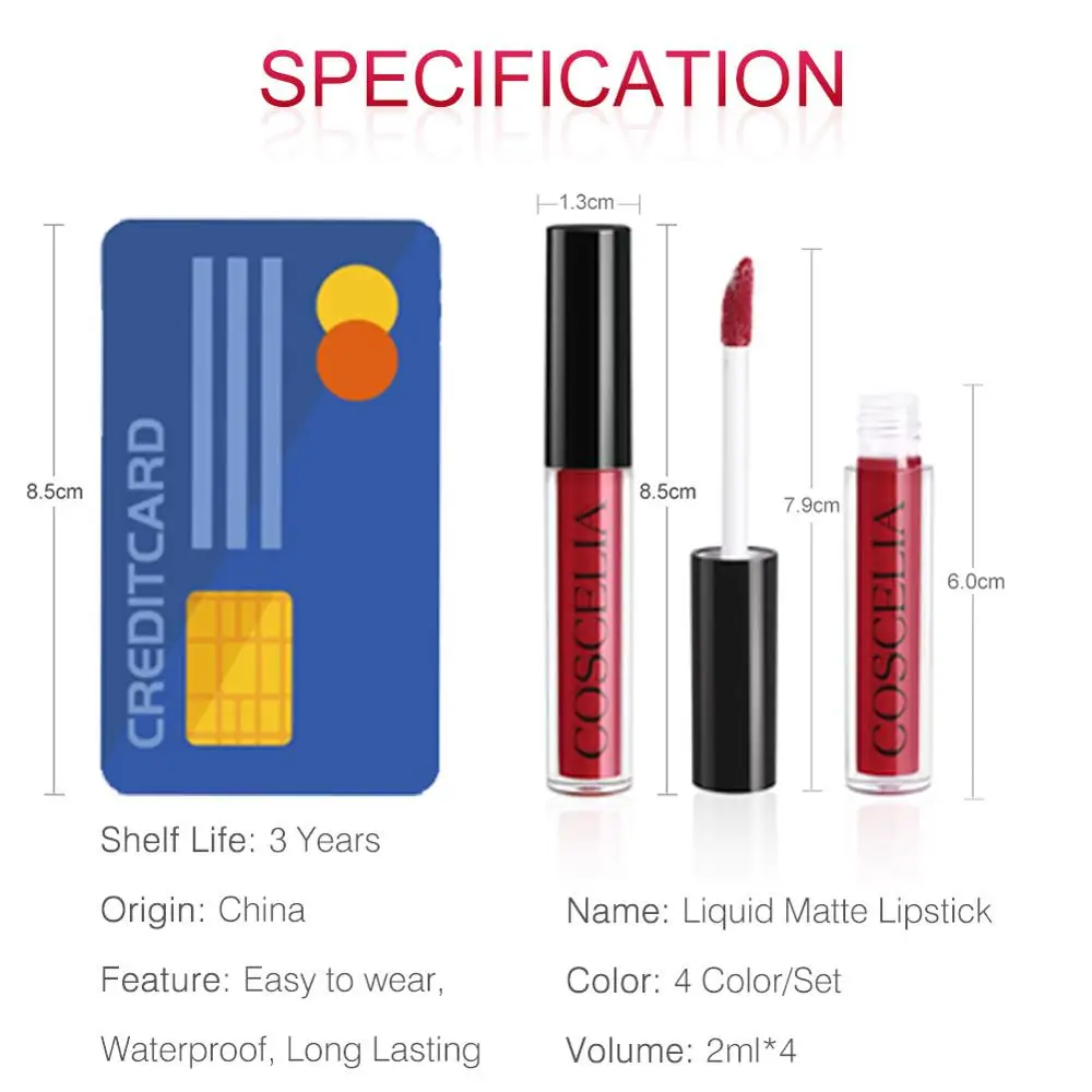 Набор водостойких матовых помад COSCELIA, 4 шт.компл., долговечная ...