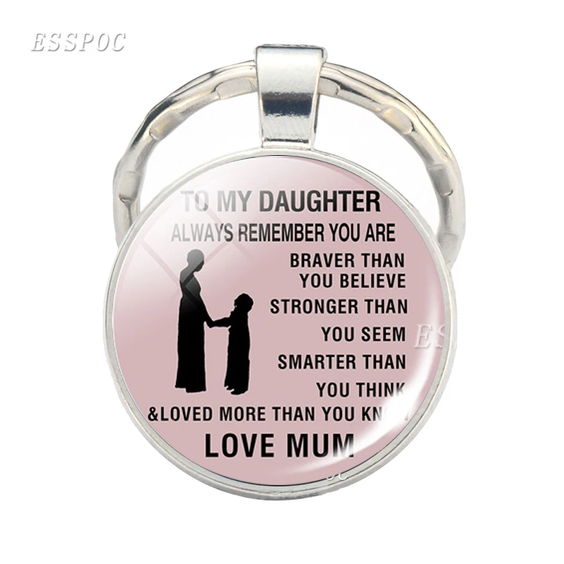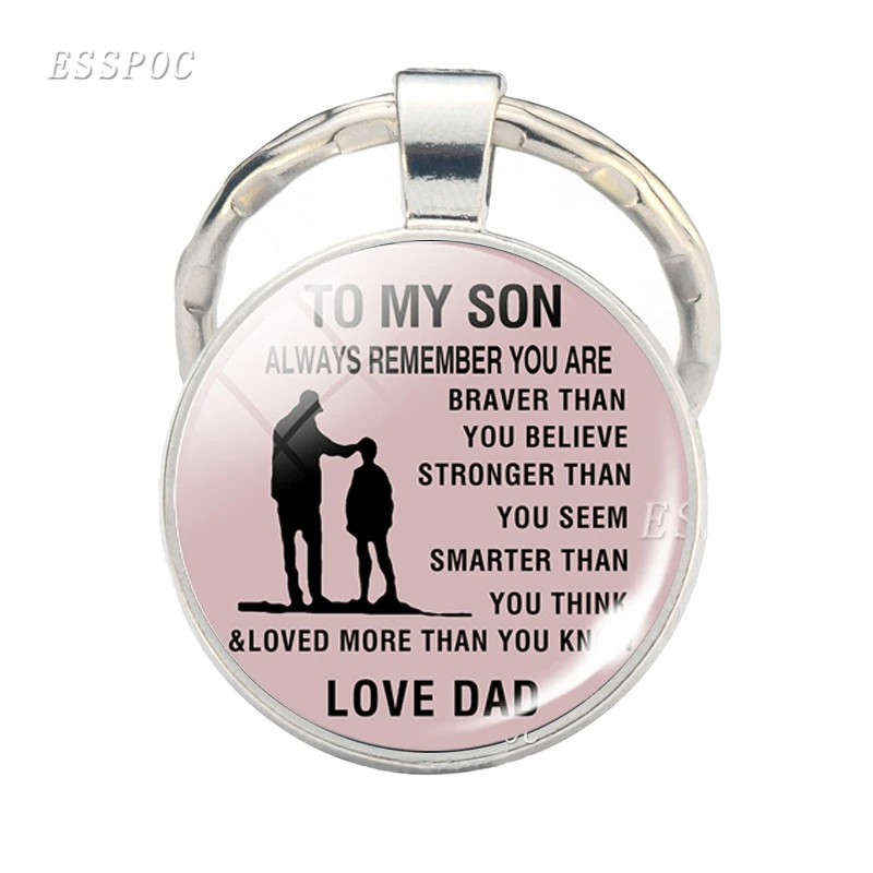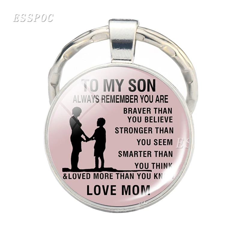 Моему сыну брелок для дочери, с надписью Always Bemember You Braver, стеклянный кабошон, ювелирный брелок, кулон для мамы, подарок для ребенка