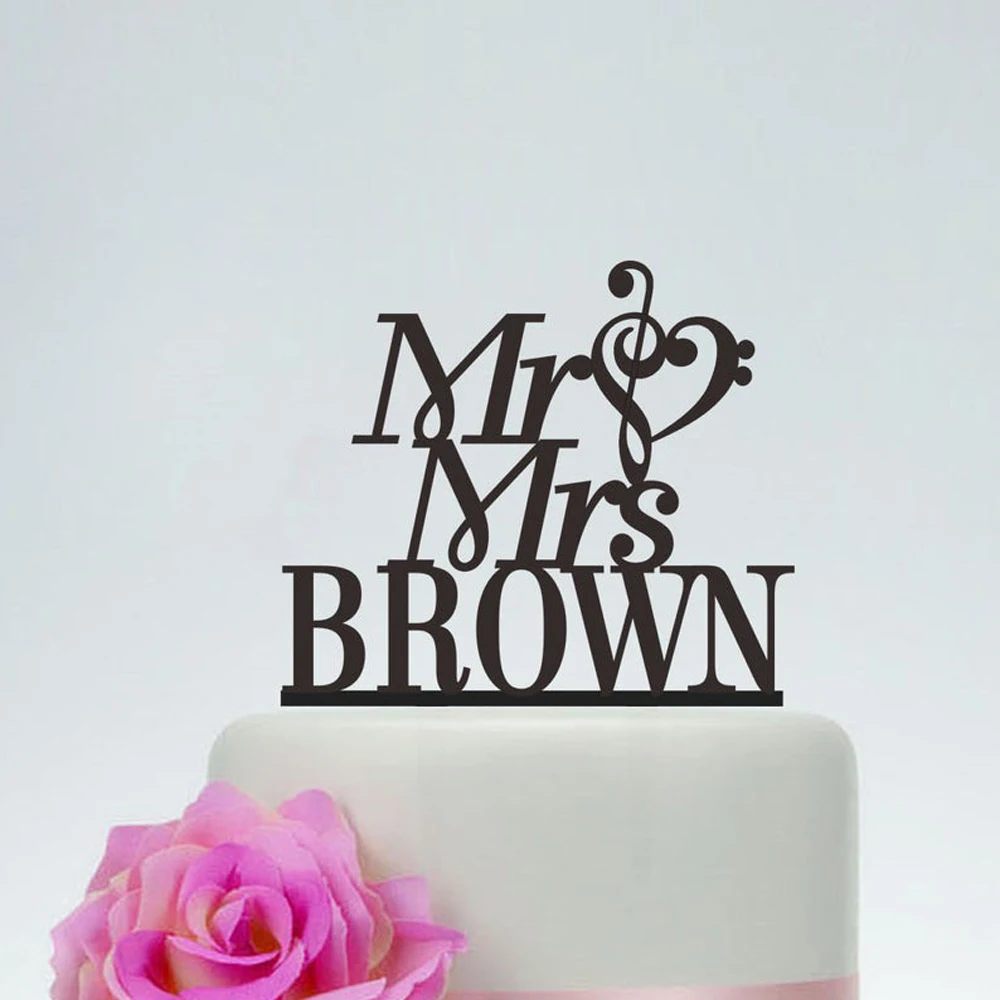Индивидуальный персонализированный Топпер для свадебного торта Мистер и миссис с фигурой нот, романтический деревенский Свадебный декор для вечеринки, для невесты и жениха
