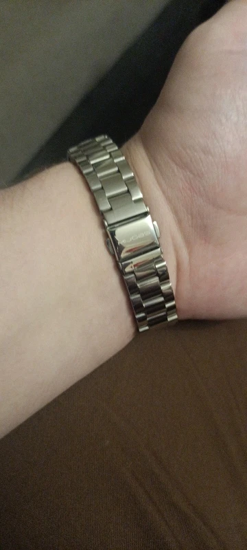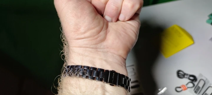 Очень мило! Выглядит точно так же, как описано. Хотя для регулировки длины браслета требуется длительное время. Предоставленный штифт не был достаточно сильным, чтобы вытолкнуть штифты, и поэтому он сгибается. Должен был использовать мой старый инструмент для завершения. Вздыхает.