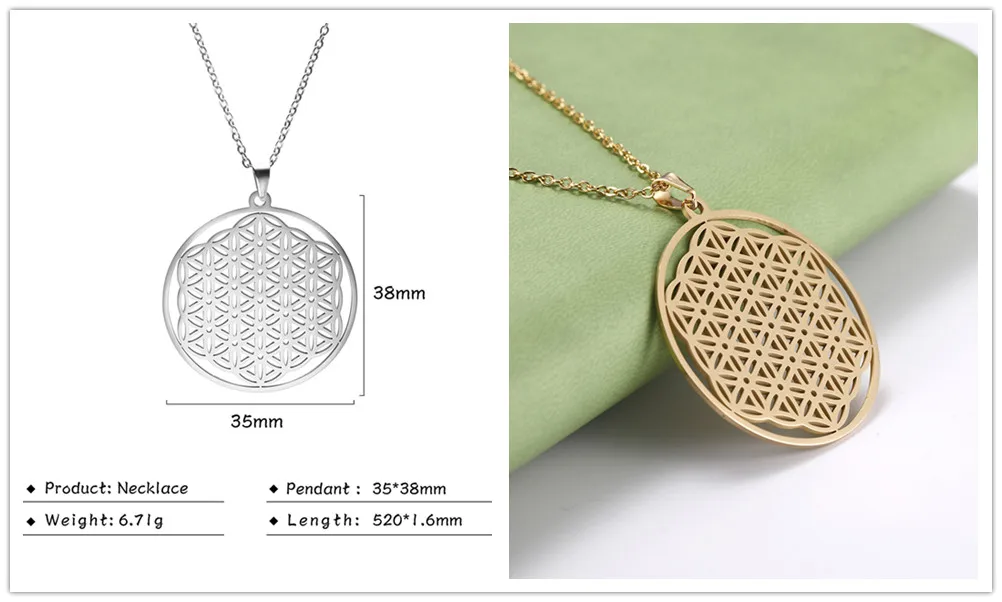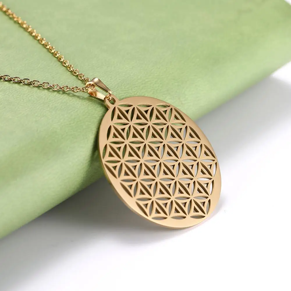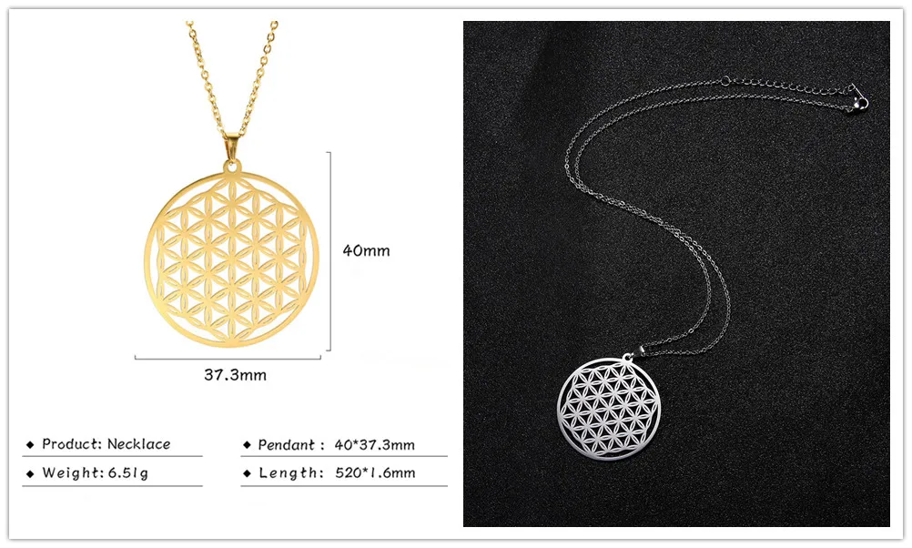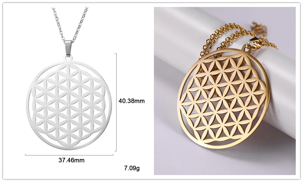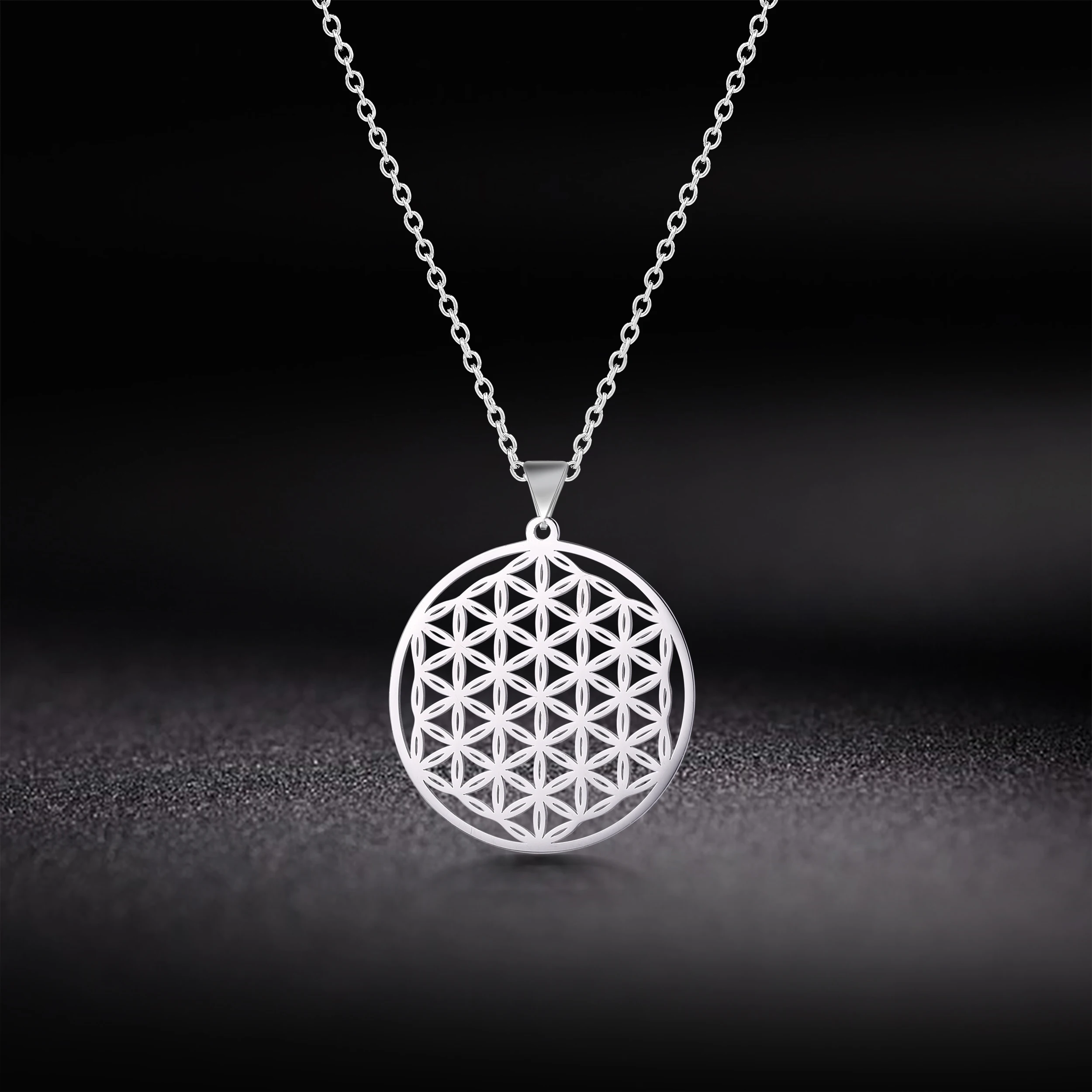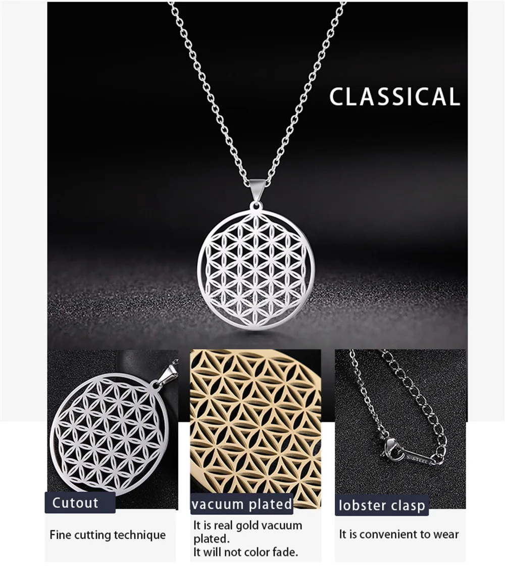 Ожерелье с круглой подвеской Skyrim из нержавеющей стали с цветком жизни, Золотая Мандала чокер ожерелье с цепочкой, ювелирное изделие, подарок для женщин и девушек