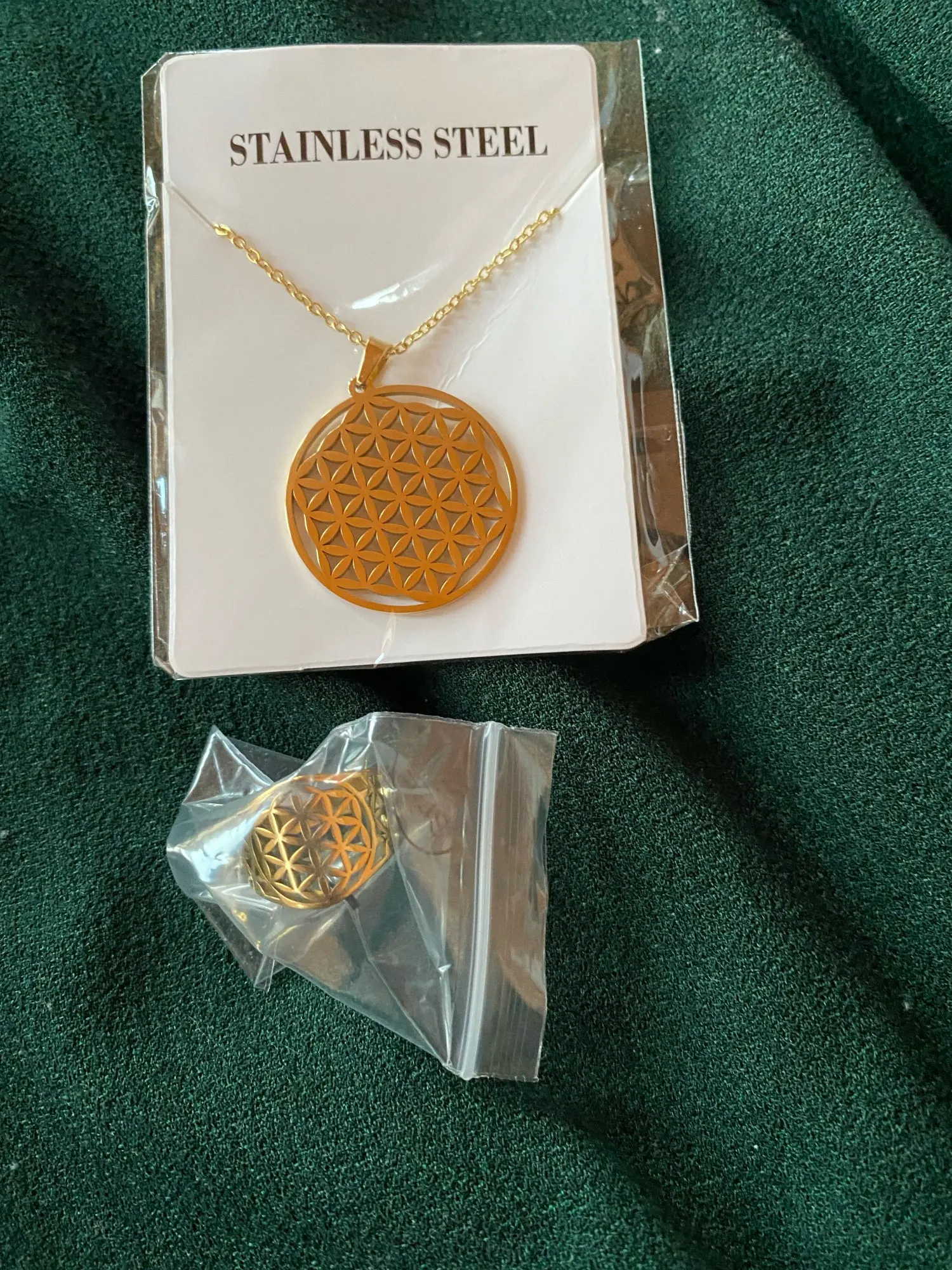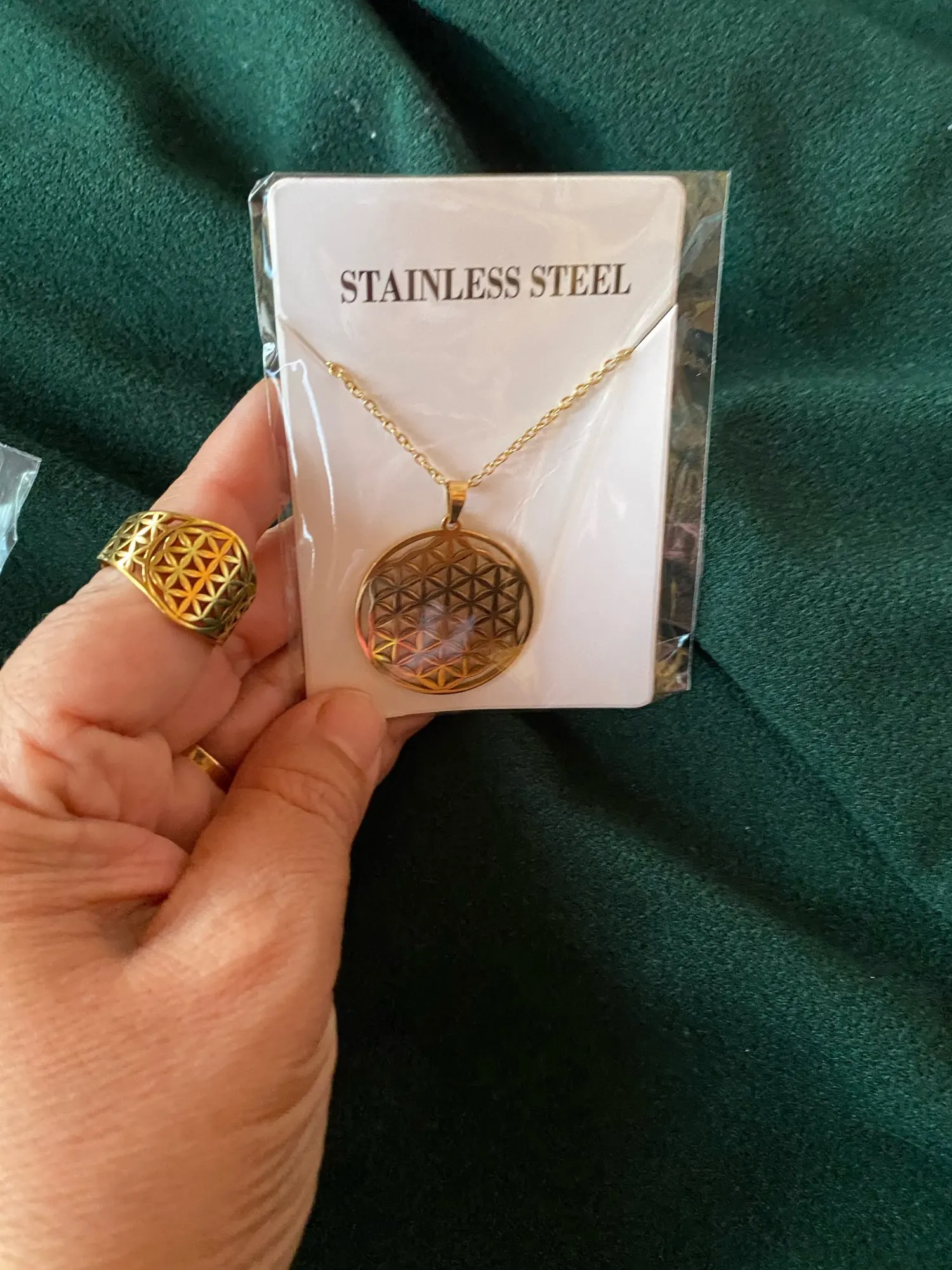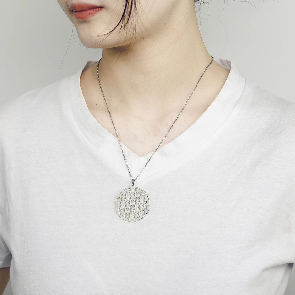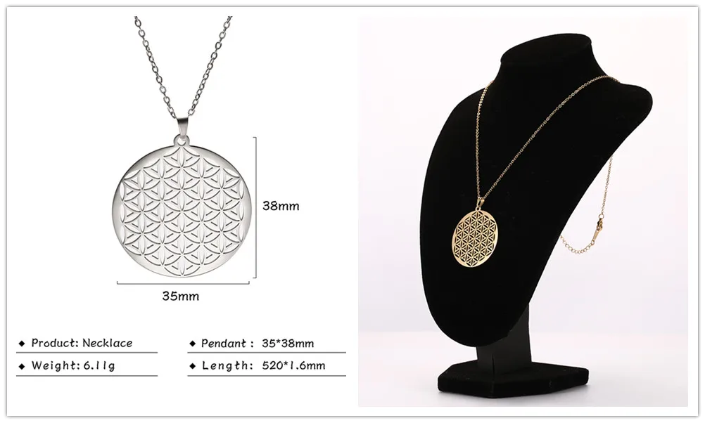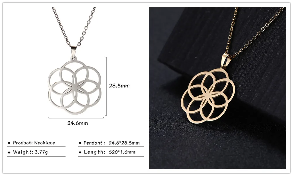 Ожерелье с круглой подвеской Skyrim из нержавеющей стали с цветком жизни, Золотая Мандала чокер ожерелье с цепочкой, ювелирное изделие, подарок для женщин и девушек