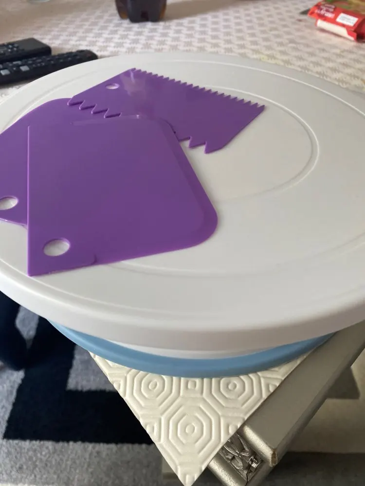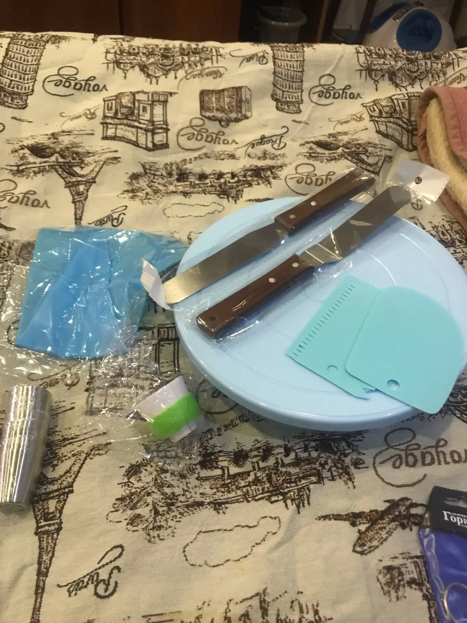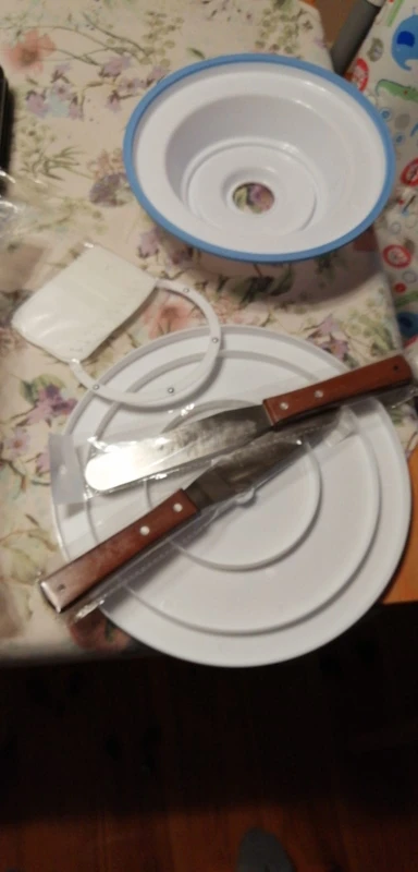 Товар пришел очень быстро, даже раньше даты что указана. Ножи хорошие как на картинке, товар соответствует описанию, но сам стол не ровный, если на него ставить тяжелое то он выпрямляется, надеюсь когда буду готовить торт, стол будет крутиться как надо и будет ровным