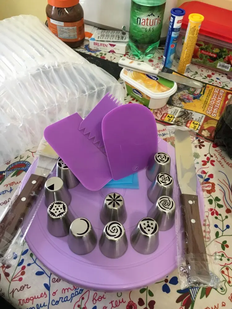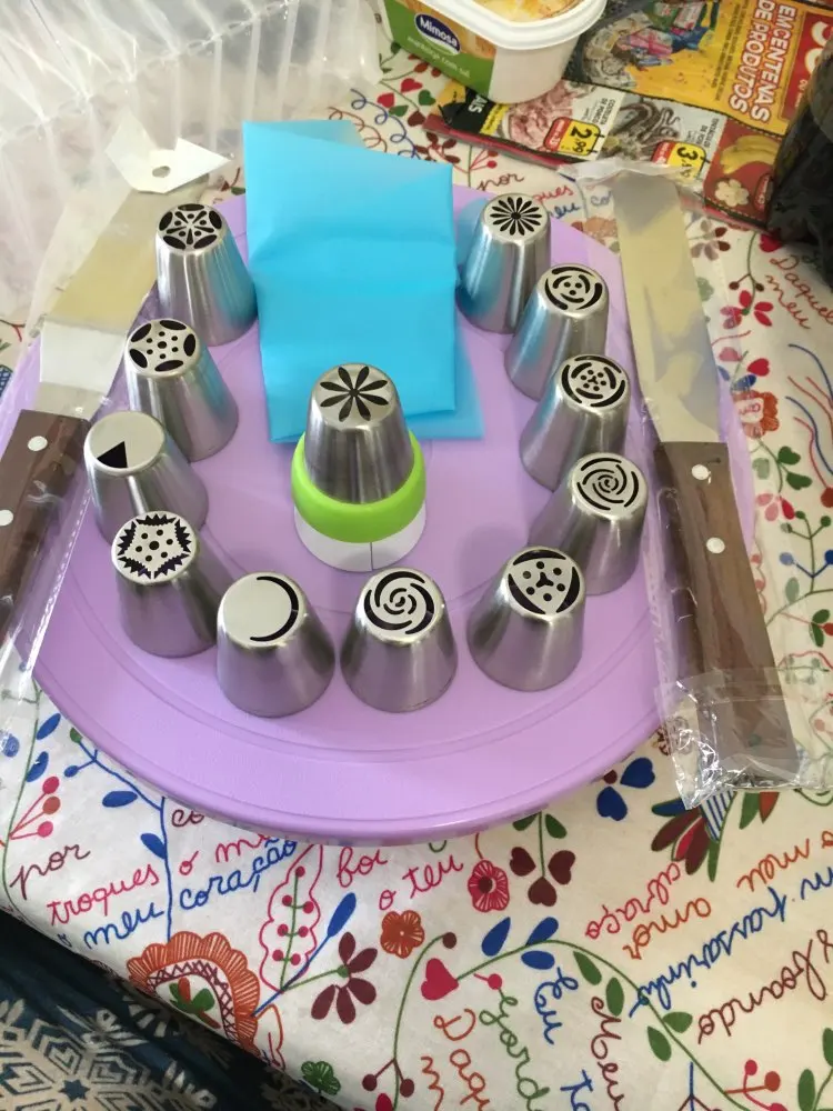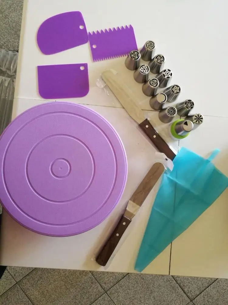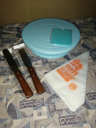 Прибыл через 13 дней после заказа, очень хорошо защищен, точно так же, как показано на фотографиях, и это реальный плюс. Товары довольно хорошего качества, аккуратные и простые в использовании. Поворотный стол легко собирается и красиво поворачивается. Я еще не тестировал торт сверху, поэтому нужно будет увидеть, будет ли он так легко поворачиваться При опоре тяжелого пирога на нем. 12 насадок аккуратно сделаны и индивидуально защищены пластиковыми листами. Мне очень нравится простота сложения насадок, чтобы использовать 3 разных цвета крема для украшения. Синий пакет имеет хороший размер, поэтому вы можете использовать много крема в то время и не тратить время, чтобы пополнять его часто. Также очень аккуратная древесина лопаток. Имеет немного химический запах, но я думаю, что он исчезнет после стирки. Я благодарю и рекомендую этого поставщика