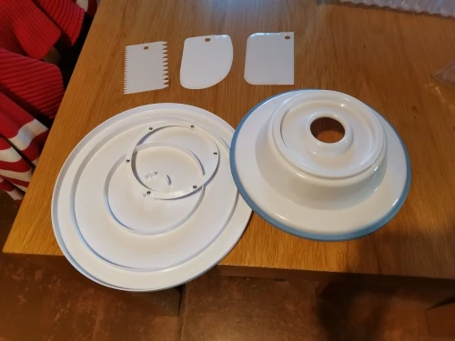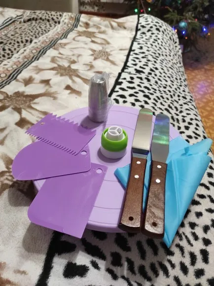 Поворотный стол идеален и больше, чем я думал. Тестовые ножи также не маленькие. Я должен был получить его 30, и я планировал использовать его на новый год, но он пришел 7 дней раньше, и теперь я могу испечь как на Рождество, так и на Новый год. Я действительно рекомендую продавцу.