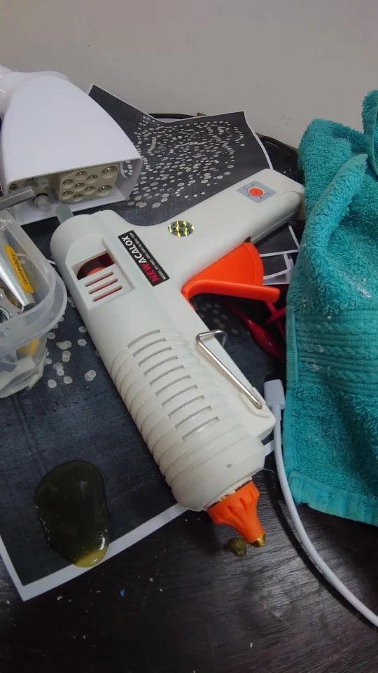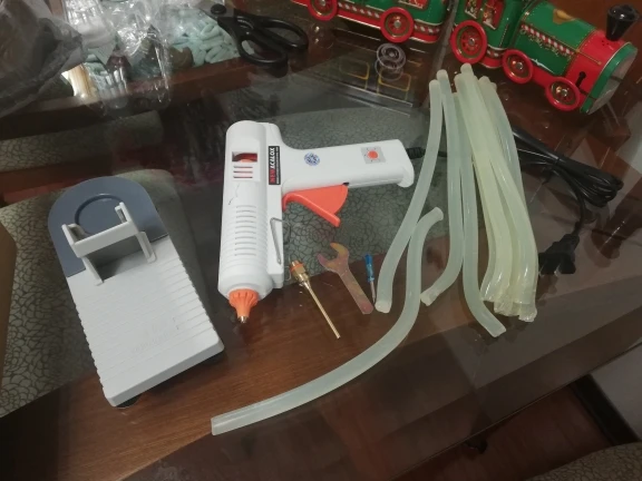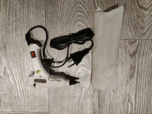Нормальный клеевой пистолет. Просто работает. С его помощью скрепляю три аккумулятора 18650. Держатся хорошо. Клей не протекает. Разогревается минуты за 2-3. Доставка до России быстрая.