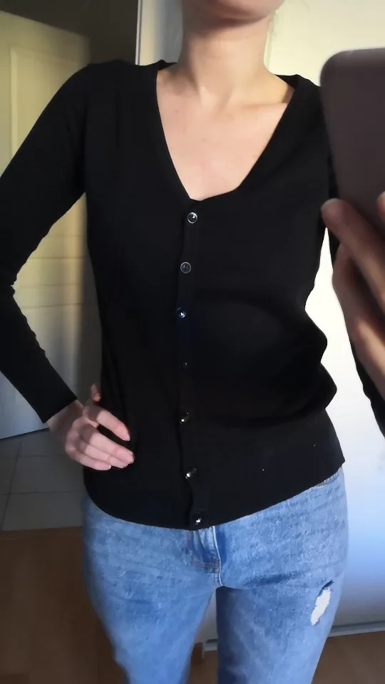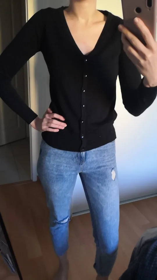 Супер, мне очень нравится! Обычно я ношу Европейский размер 34 - 36 (XS-S), рост 173 см и получил Размер M, чтобы он не был слишком плотно прилегающим, и он просто идеален. Материал приятный на ощупь и после стирки кардиган не садится. Швы ровные, они не тянутся и не садятся. Для моих длинных рук и туловища также очень хорошая длина. Я точно могу порекомендовать этот товар. Идеально подходит для весенних или холодных летних дней.