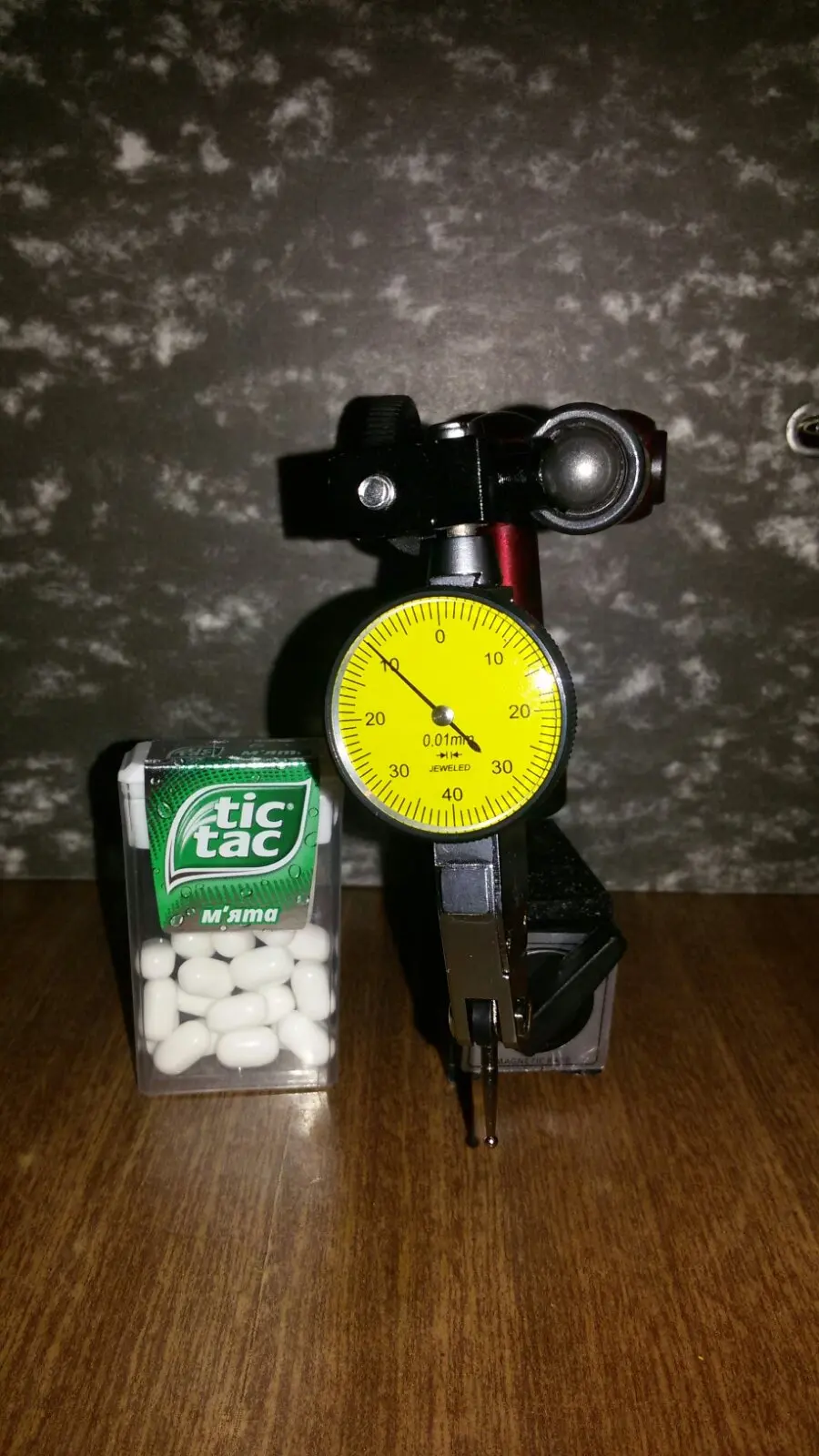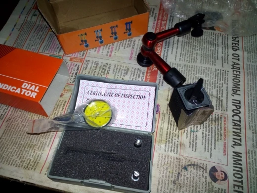 Хорошо упаковано. Коробки стойки и индикатора целые. Индикатор похож на качественное заводское изделие. Магнит стойки достаточной силы, ожидал что будет хуже, судя по некоторым отзывам