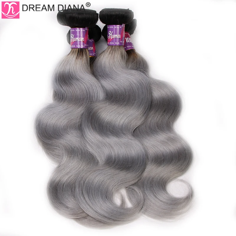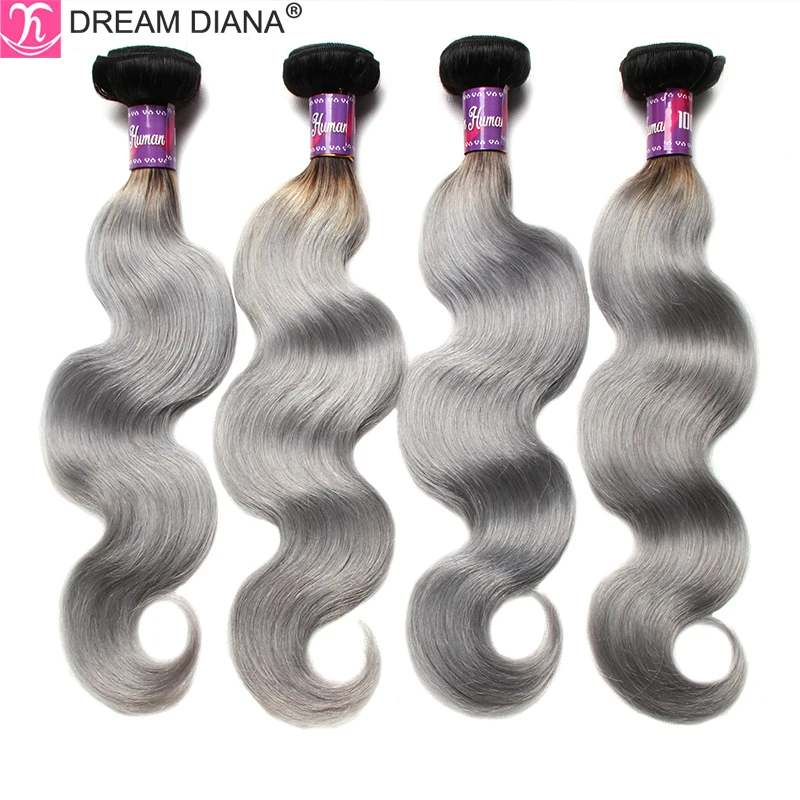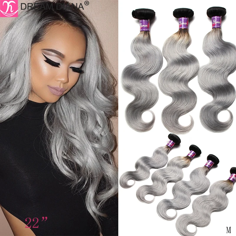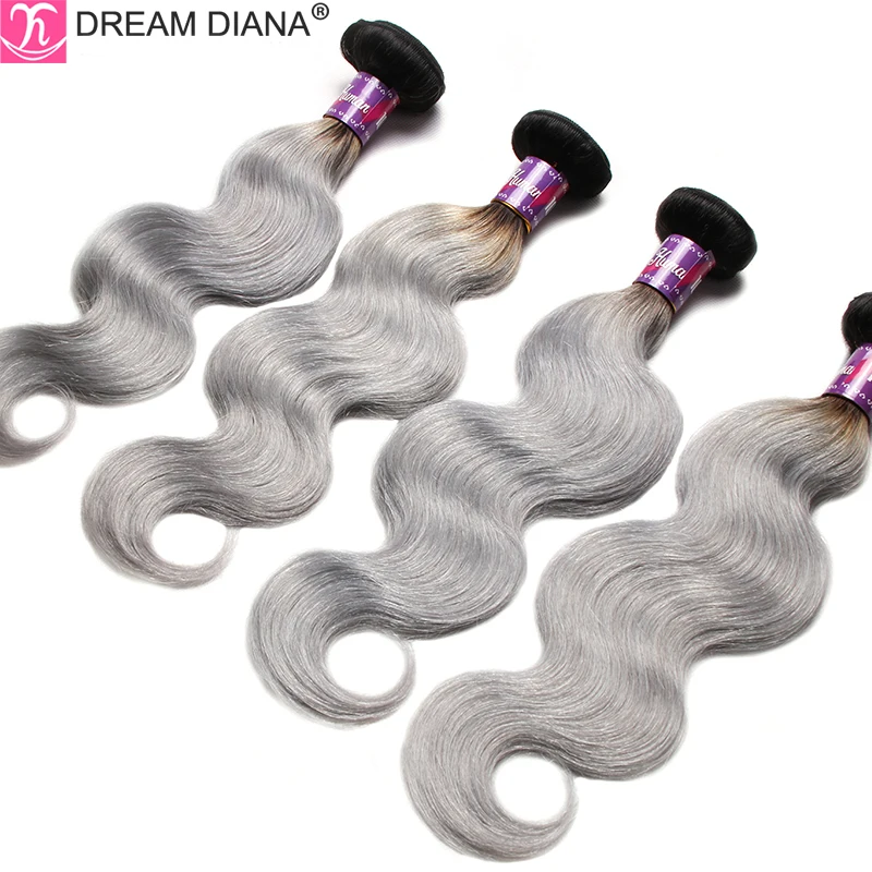 Волнистые серые пучки DreamDiana 1B с эффектом омбре, 34 шт., серые бразильские волосы 100%, человеческие волосы с эффектом омбре, волнистые серые волосы с темными корнями Remy