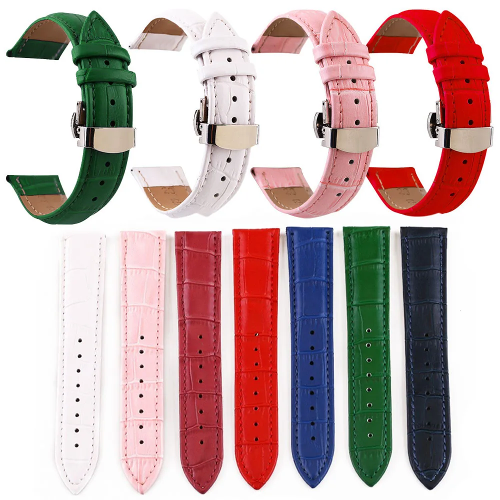 Ремешок для часов с узором «крокодиловая кожа», 12, 13, 14, 15, 16, 17, 18, 18, 19, 20, 21, 22, 24 мм, ремешок для часов из натуральной кожи, металлический ремешок с пряжкой-бабочкой