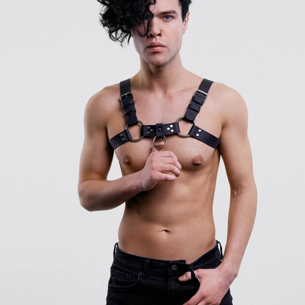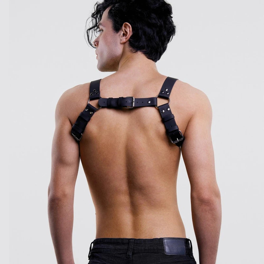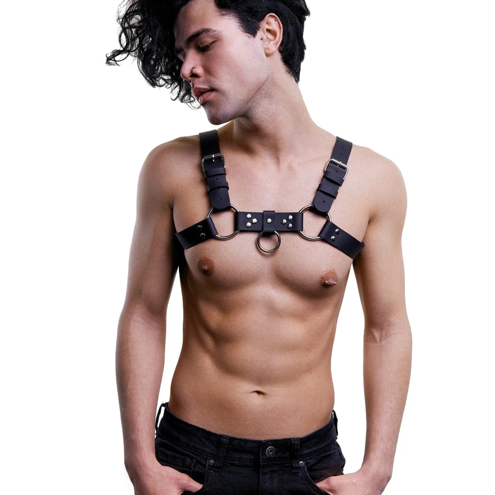 CKMORLS модная кожаная упряжь, топ с круглым вырезом, мужская кожаная БДСМ секс бандаж гот ремни-подтяжки клетка регулируемый, круглым носком и металлическими заклепками Клубная одежда Ремешок из искусственной кожи